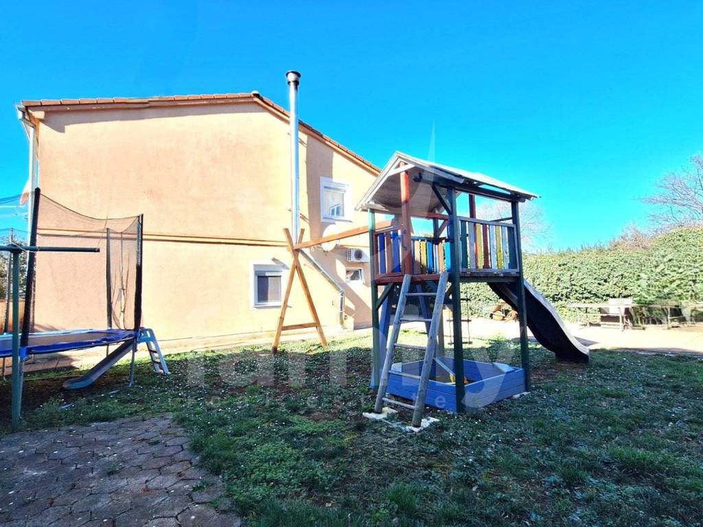 Right in the area of the Municipality of Fažana, in a peaceful environment, is this beautiful family detached house of 282 m2 with a garden and three spacious parking spaces. The house consists of 3 separate residential units on two floors. On the ground floor there are two two-bedroom apartments with separate entrances, which have, in addition to two bedrooms, a living room, kitchen, bathroom, and each has a very pleasant covered terrace, which offers us the possibility of using the apartments for people with reduced mobility. The apartment on the first floor with an area of 141 m2 consists of an entrance hall, an open-type living room with high ceilings and a decorative open-type fireplace that gives us a special atmosphere when using it. The living room, kitchen and dining area are connected into one spacious open-type room with access to a covered terrace ideal for enjoying relaxing moments. In addition to the above, the apartment has a spacious hallway, a large bathroom with a shower and a separate walk-in shower, and three illuminated bedrooms. The entire building uses wood-fired central heating for the heating system, and there is a boiler room with a storage room on the ground floor. Each residential unit has separate air conditioning units with separate external units that are not connected. The entire house is equipped with high-quality PVC joinery with double glazing, mosquito nets and roller shutters, equipped with household appliances and elements and is being sold as such. The orientation of the building is ideal southwest, which is also a great advantage when choosing a property.