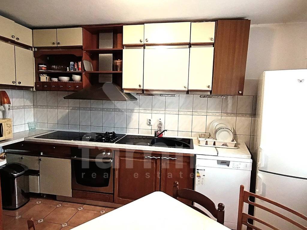 Wide external stairs lead to a long terrace that borders the apartment on the first floor on almost the entire eastern side. At the entrance there is an entrance hall from which you enter the kitchen on the right, 4 spacious double bedrooms, one of which has a large bathroom, and one large bathroom is located between the rooms and the living room. The spacious living room is divided into a dining area with a bar and access to a large loggia, and a TV lounge with a piano.
