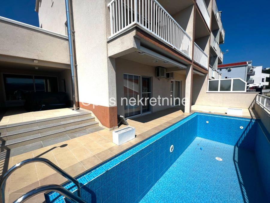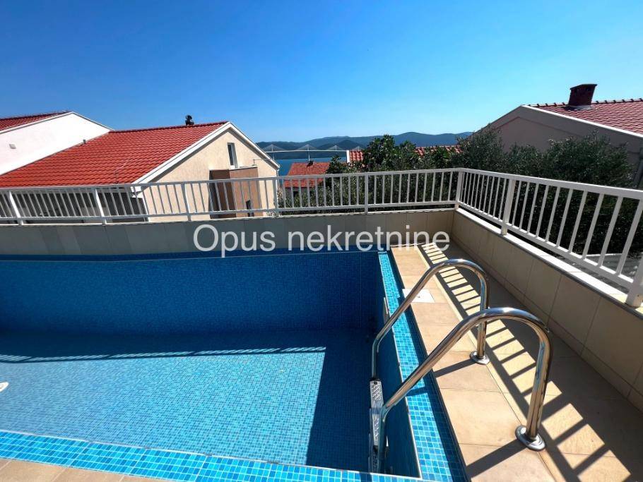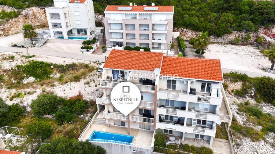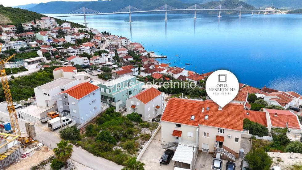 Prodaje se predivan apartman 129,30 m2 u mjestu Komarna , na atraktivnoj lokaciji s kaskadnim pogledom na Pelješki most, udaljen svega 100 m od mora. Apartman se sastoji od ulaza, kuhinje i dnevne sobe, dvije spavaće sobe, kupaonice, loggie, bazena, sunčališta i terase. Uz ovaj apartman dolazi i jedan susjedni manji apartman, nedovršen. Veći apartman potpuno je namješten, moderno uređen i kao takav izvrsna prilika za nastavak turističke priče i uživanje u moru i suncu na prekrasnoj Jadranskoj obali.