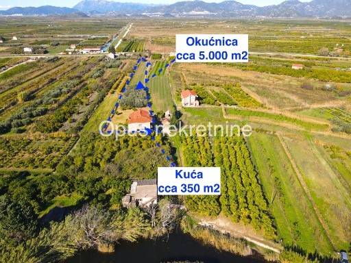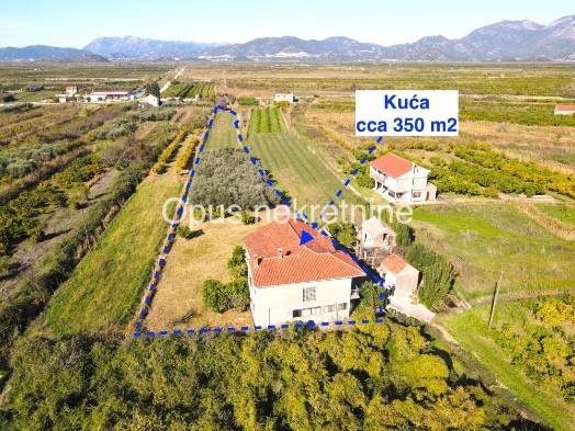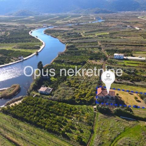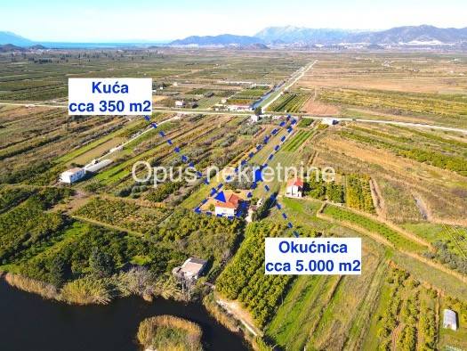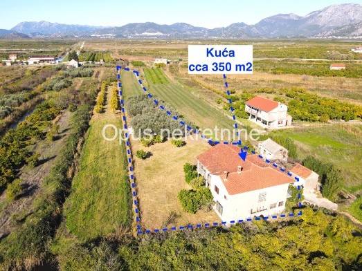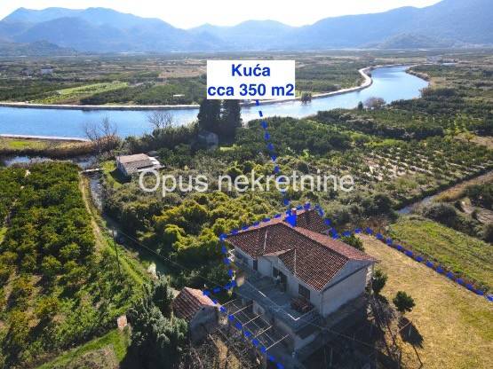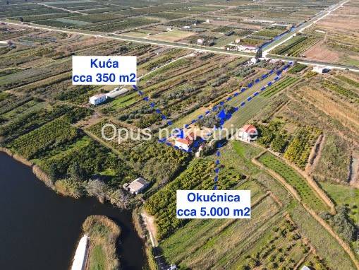 Prodaje se kuća cca 350 m2 u mjestu Opuzen, na putu prema Ušću, poznatoj ljetnoj destinaciji za kiting turizam. Kuća ima prostranu okućnicy ,vrt i zemljištem od cca 5000 m2 . Kuća je smještena na mirnoj lokaciji, u blizini rijeke, povezana pristupnim cestama s 2 strane. Sastoji se od prizemlja i kata. Izvrsna prilika za napraviti villu s velikom okućnicom na mirnoj lokaciji.
