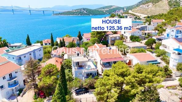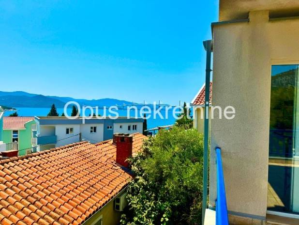 Kuća je katnica sa ravnim krovom na kojem je prekrasna terasa s pogledom na more i Pelješki most.