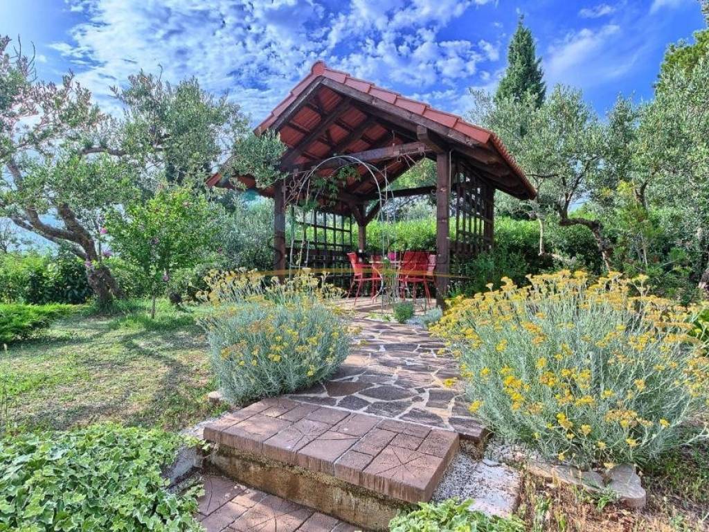 Okućnica je prostrana i privatna, s vanjskim bazenom, sunčalištem i dječjim igralištem, pružajući idealan prostor za opuštanje i druženje u prirodnom okruženju. Na vanjskom prostoru nalazi se i elegantan kamin, dok četiri natkrivena parkirna mjesta osiguravaju dodatnu funkcionalnost i praktičnost.