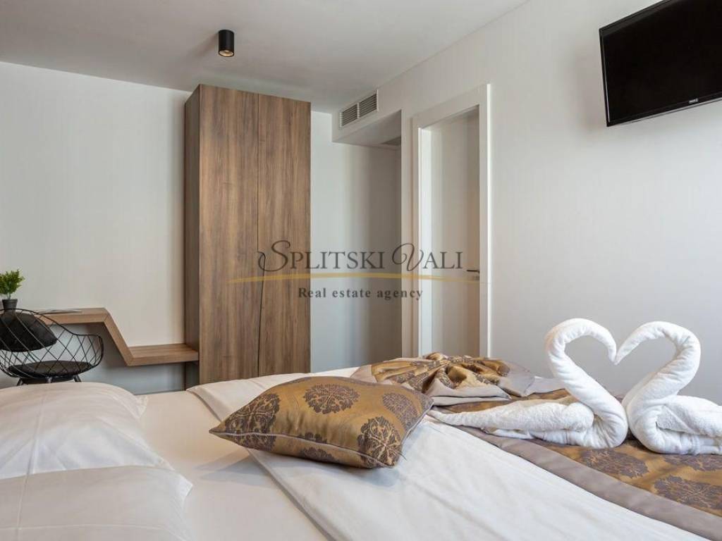 Posredujemo u najmu luksuznog stana u Podstrani. Udaljen je 12km od Splita i nalazi se u neposrednoj blizini plaže i restorana. Stan se prostire na 75m2 i sastoji se od kuhinje s blagovaonom, dnevnog boravka, dvije spavaće sobe, dva kupatila i balkona s prekrasnim, otvorenim pogledom na more. Opremljen je svim potrebnim kućanskim aparatima, klimatiziran i s dostupnim internetom. Stanu pripada garažno parking mjesto. Dostupne su GYM te SPA prostorije koje se nalaze na etaži -1 zgrade. Dostupno od 01.10. do 01.06.2026. Cijena: 1800 sa uljučenim režijama (polog 1800) Agencijska provizija u visini jedne mjesečne najamnine. Za sve dodatne informacije molimo da nas kontaktirate na (+385) 0991644556 - Petra Razgled nekretnine moguć je isključivo uz potpisani Ugovor o posredovanju, a što je u skladu sa Zakonom o zaštiti podataka i Zakonom o posredovanju i prometu nekretninama.