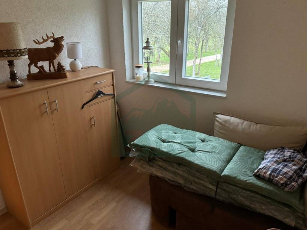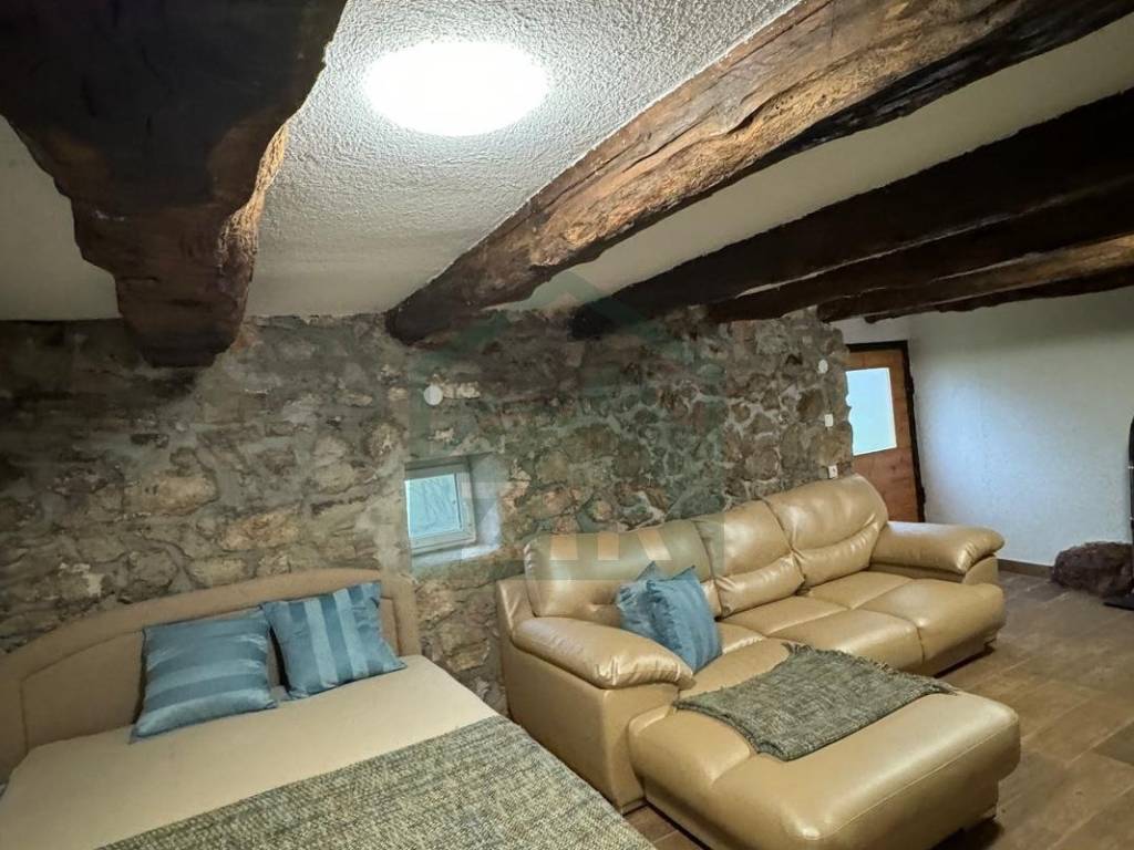 The house is immediately habitable and consists of a ground floor and an upper floor. The upper floor includes a living room, dining room, kitchen, bedroom, bathroom, and entrance hall, with a total area of 65 m². The ground floor consists of one room with an area of 30 m², decorated in a rustic style with exposed ceiling beams. The house was completely renovated in 2024, when new PVC windows and doors were installed, a new metal roof was put on, new water and electricity installations were completed, floors were fitted with tiles and laminate, and the house is heated by a wood-burning system. Next to the house there is an old auxiliary courtyard building.