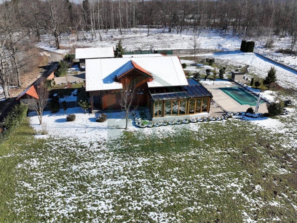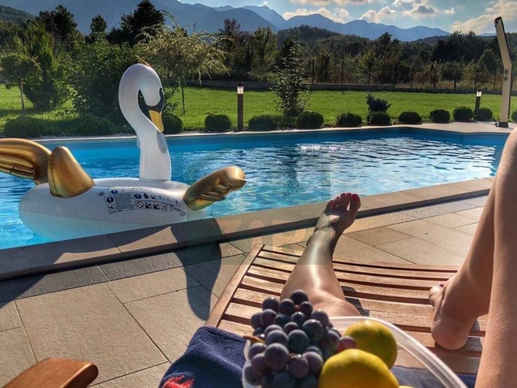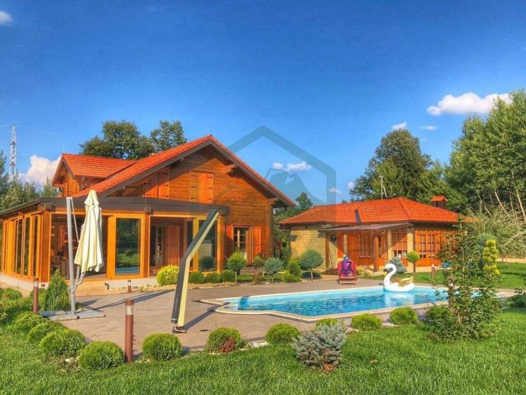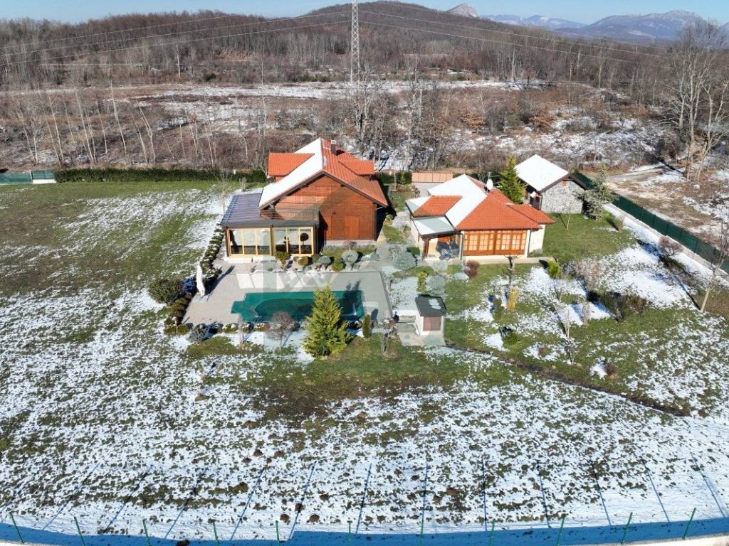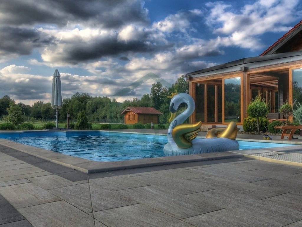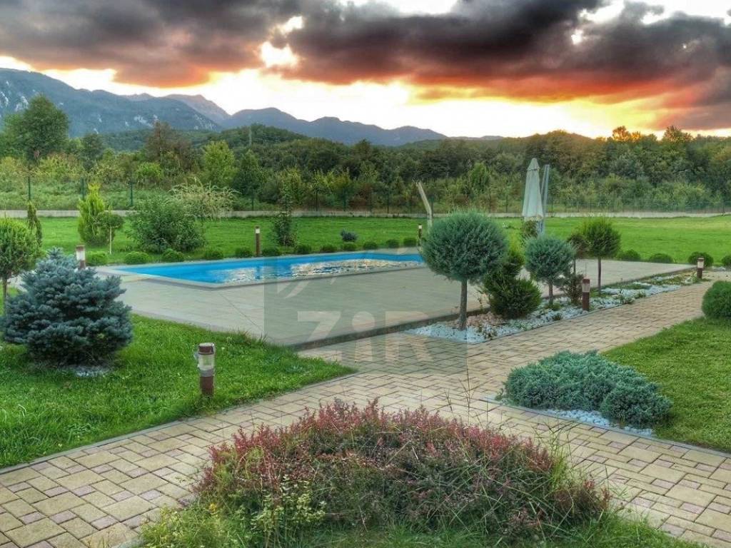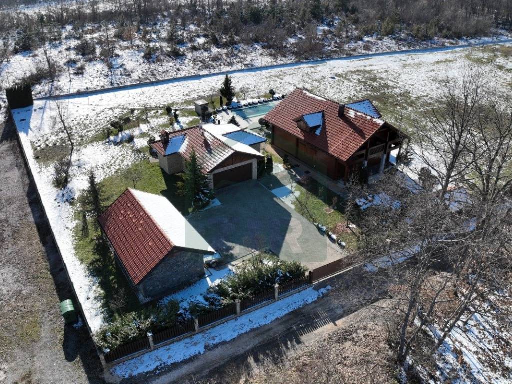 The estate comprises a main house with a winter garden, a swimming pool, a summer kitchen, a garage, a traditional stone house with a hearth (locally called a "kužina"), a storage room, courtyard, orchard, and extensive grounds, all together covering more than 17,000 m.