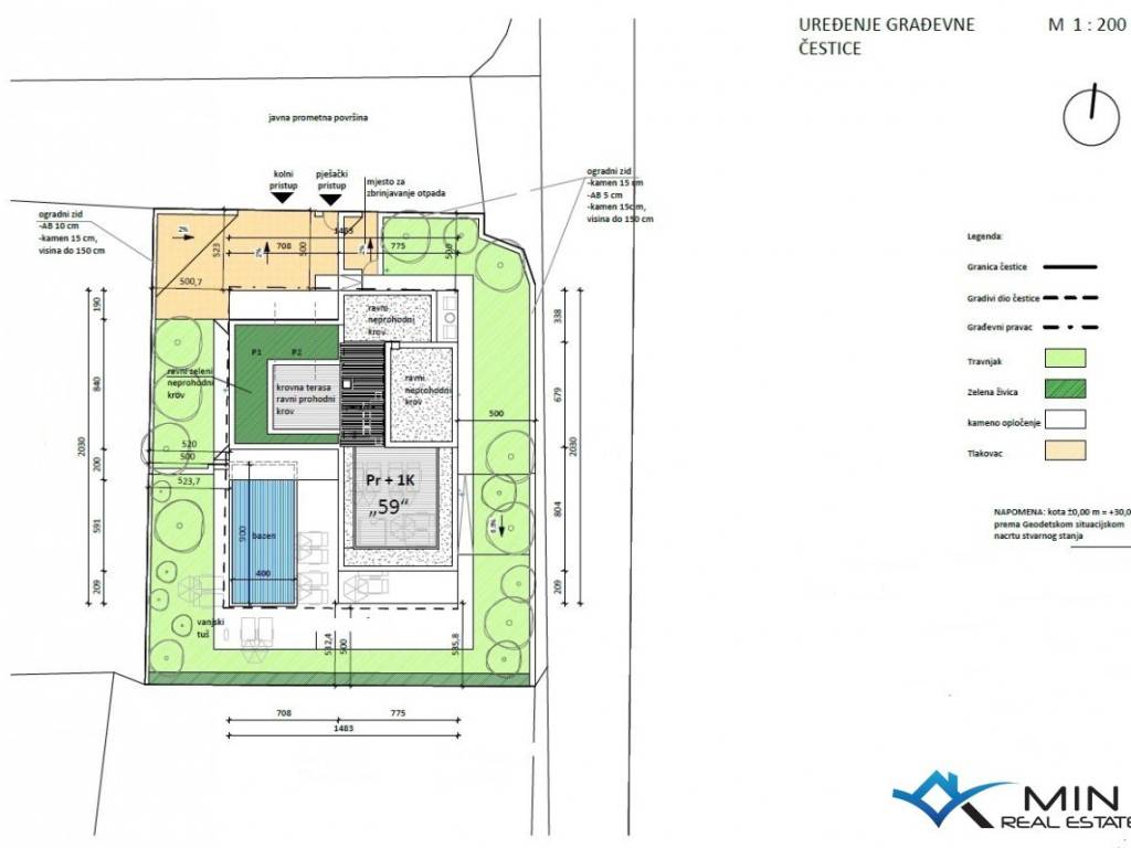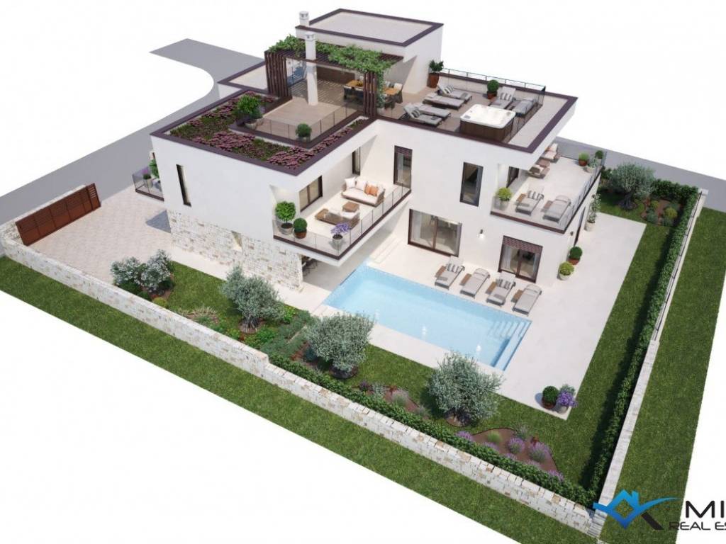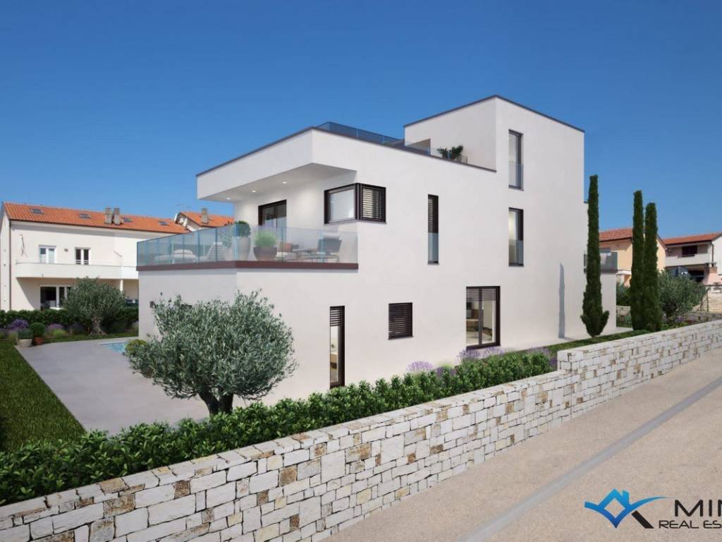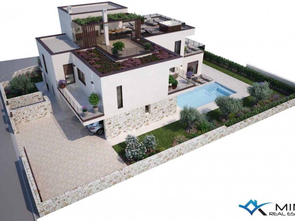 Building land for sale in Novigrad, 2 km from the city center and 1500 m from the sea. The size of the land is 762 m2 and a building permit was obtained for the construction of a villa with a pool of 369 m2, and all utilities, electricity connection (18 kw) and water have been paid. The price includes the construction of the house in the ROH BAU phase.