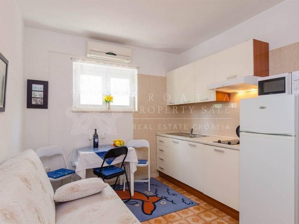 This sea view house is ideal for vacation. Consists of 4 apartments (each with separated entrance and parking place). 2 apartments have 2 bedrooms while the other two are with one bedroom + living room. Price for Croatia Orebic sea view house for sale is 360 000 EUR.