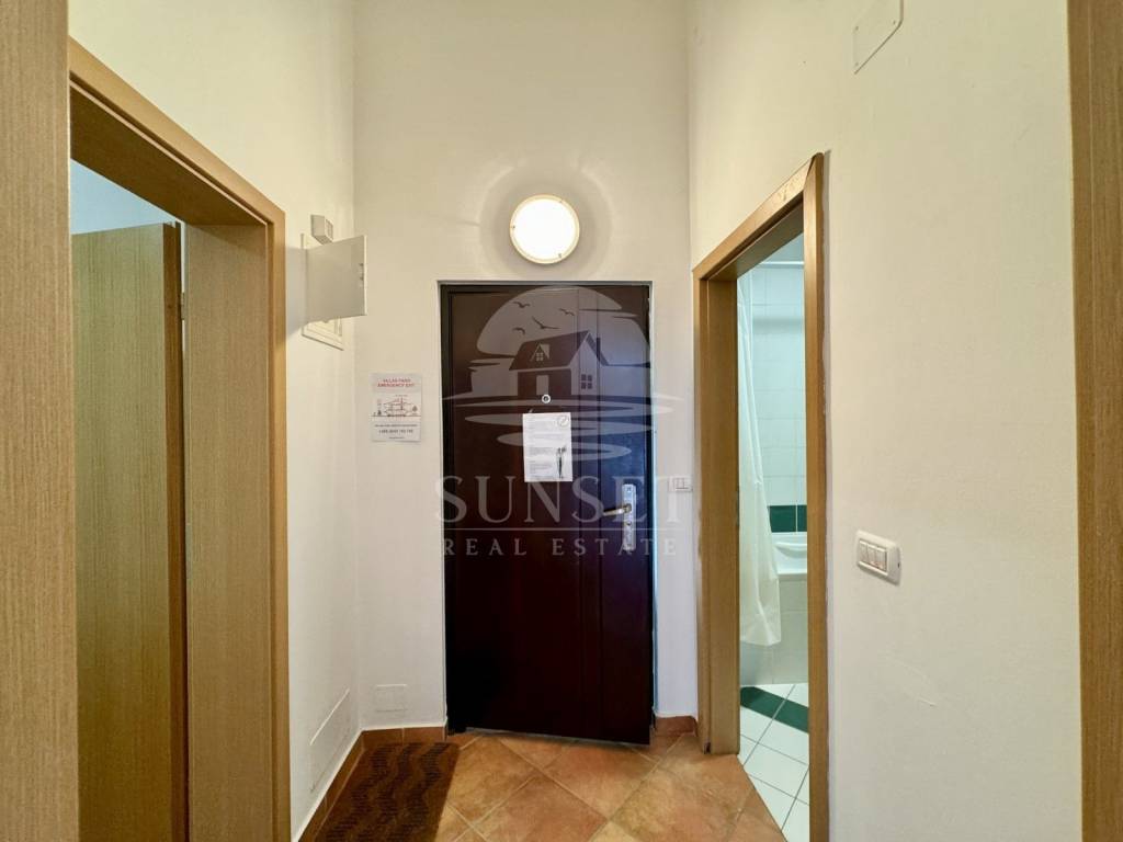 A first-floor apartment of 48 m with a private parking space is for sale, located in a quiet neighborhoodideal for comfortable year-round living or as an investment in tourism. The apartment consists of an entrance hallway, living room with a kitchen and dining area, one bedroom, and a bathroom. It is only 400 meters from the sea, while the center of Umag is 6 km away. This property offers a peaceful and pleasant atmosphere, with proximity to all necessary amenities and excellent rental potential during the tourist season.