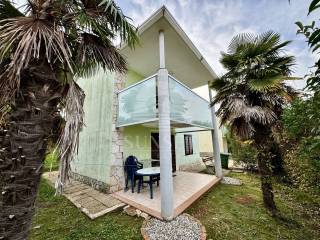 This attractive house is located on a 435 m plot, with a total living area of 132 m. It is situated in a peaceful neighborhood, just 150 meters from the sea, offering an excellent location near Novigrad (5 km), Umag (10 km), and with quick access to the highway (6 km).