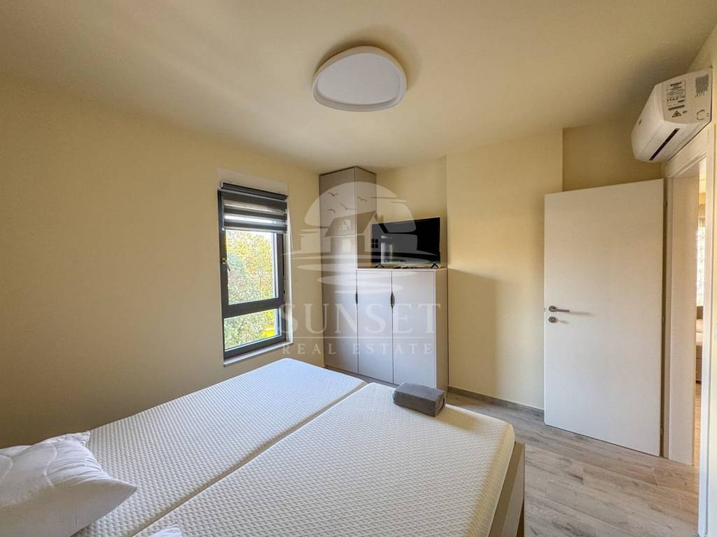 This modern apartment is located only 300 meters from the Adriatic Sea, in the peaceful fishing village of Lovrečica on the western coast of Istria, known for its natural beauty and clean sea. Nearby, you'll find the Park Umag campsite and numerous cycling trails along the coast, making this location ideal for enjoying nature and outdoor activities.