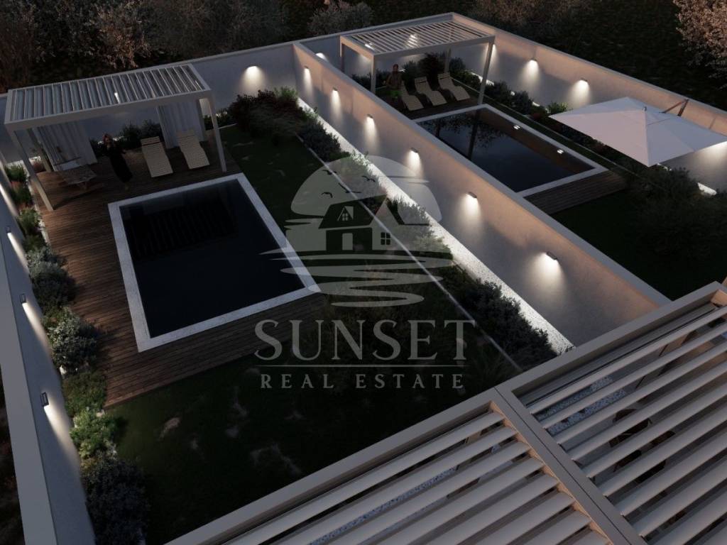 An internal staircase leads to the rooftop terrace, which offers a stunning view of the sea and surrounding nature. The terrace is divided into a covered area of 50.67 m and an uncovered section of 42.23 m, with a pre-installed setup for a jacuzzi.