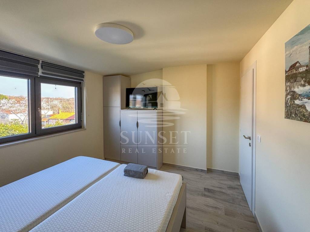 This modern apartment is located only 300 meters from the Adriatic Sea, in the peaceful fishing village of Lovrečica on the western coast of Istria, known for its natural beauty and clean sea. Nearby, you'll find the Park Umag campsite and numerous cycling trails along the coast, making this location ideal for enjoying nature and outdoor activities.