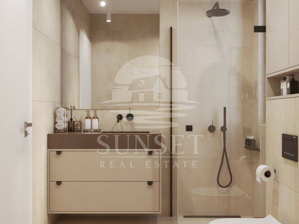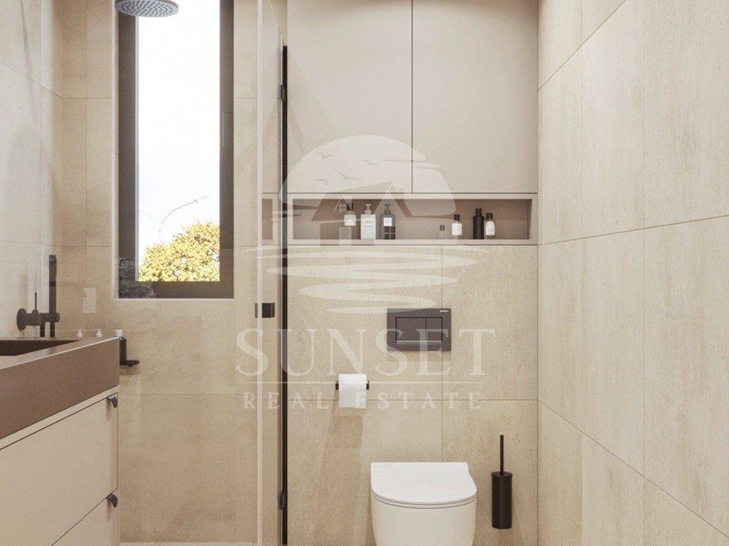 The apartments are equipped with a Mitsubishi split air conditioning system with units in all rooms, underfloor heating in all rooms except bedrooms, anthracite joinery with premium insulation, electric roller shutters, and mosquito nets. The exterior features thermal styrofoam insulation of 1012 cm thickness, and high-quality finishing materials have been used. The planned completion of construction is October/November 2025.