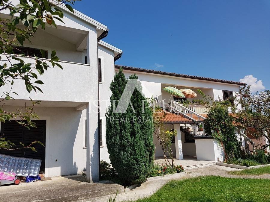 K03 House of 358 m2, garden of 693 m2 with several fruit trees. The house is located in a place where there is a shop, coffee bar ca approx. 14km to the sea. It consists of 5 independent apartments, ideal for rent; kitchen, dining room, bathroom, 2 bedrooms, terrace. Part of the house is in unfinished condition (ROH BAU). PRICE: 446.000, -