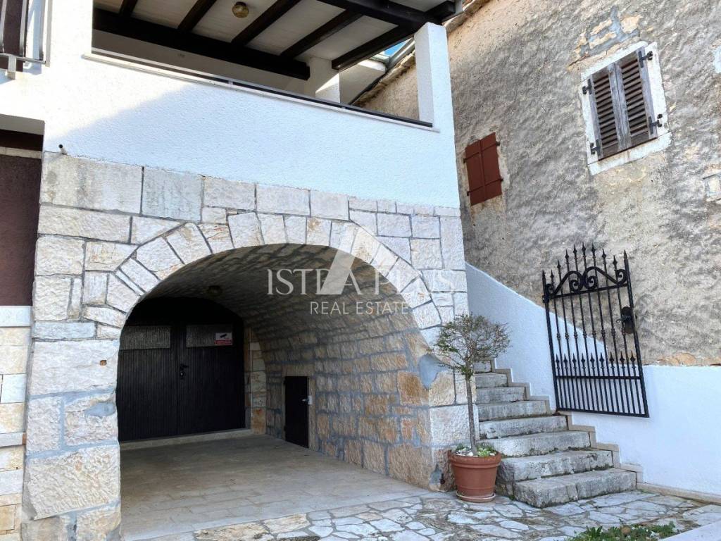 In the attic there are two bedrooms, a bathroom, a living room with access to a terrace that offers a view of the Istrian landscape and the sea.