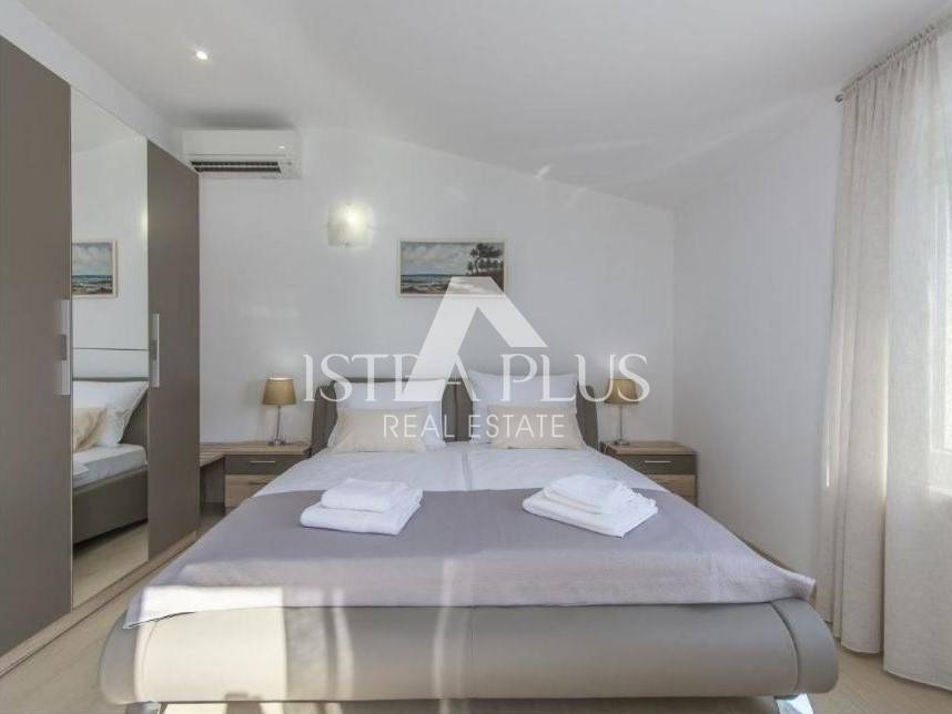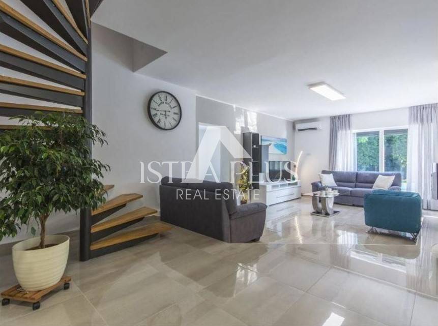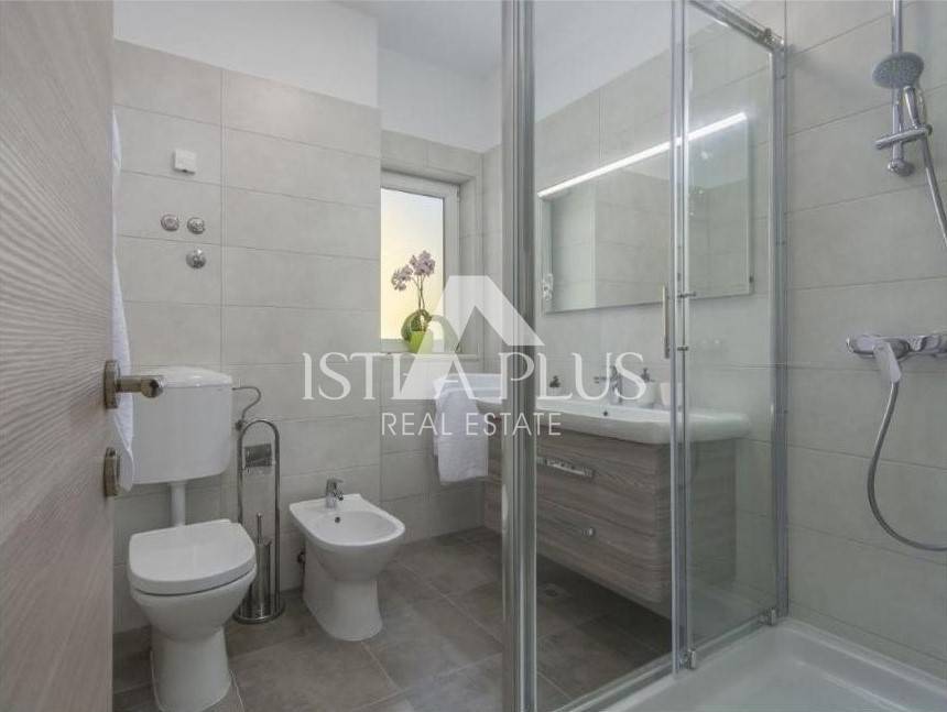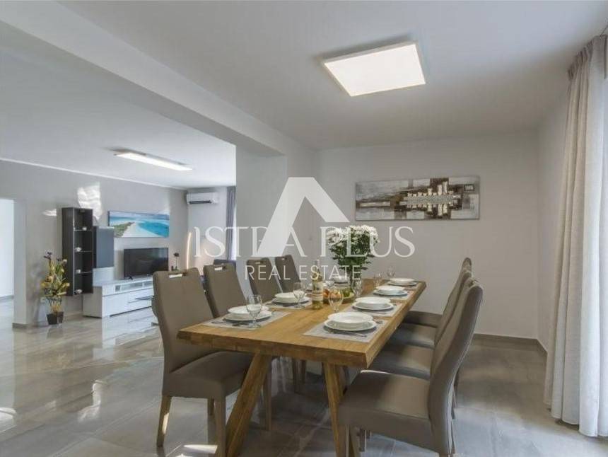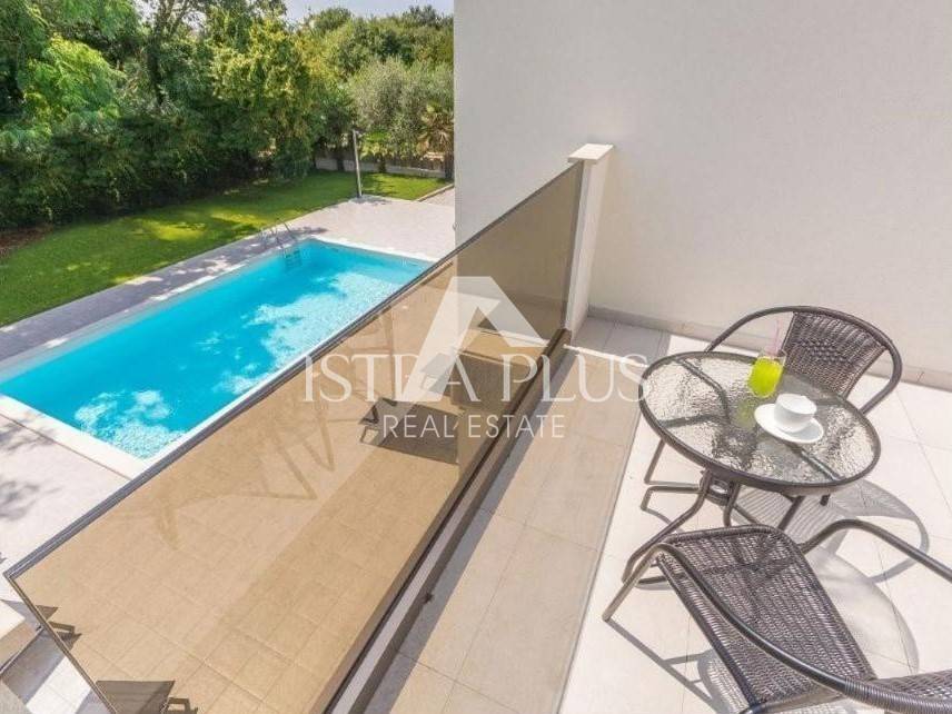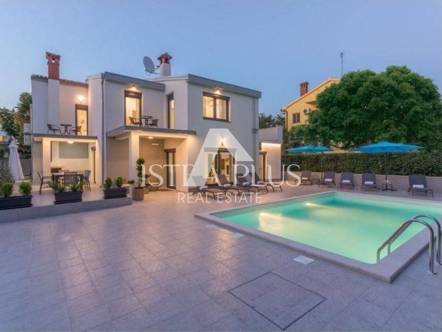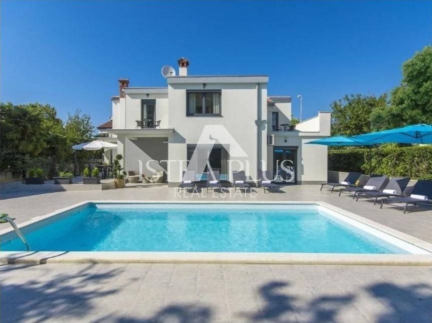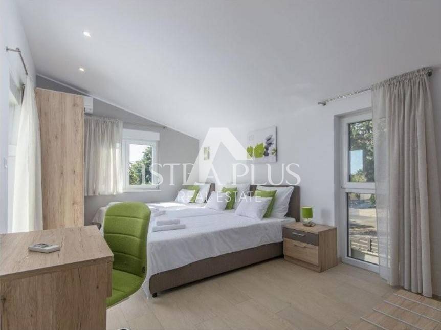Villa with pool, total living area 230 m2, 400m to the sea and 1km from the center of Poreč. It is located on a plot of land of 693 m2 and is spread over 2 floors.