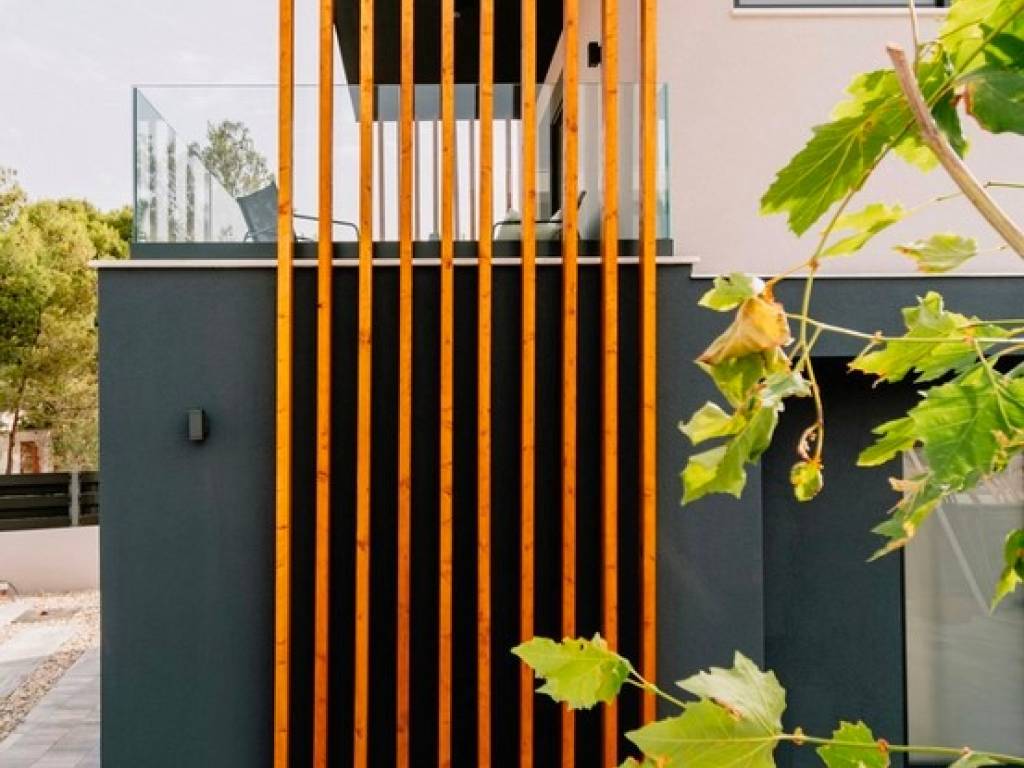 Layout & Features: Ground floor: Spacious open-plan living room, kitchen, and dining area Floor-to-ceiling glass doors leading to the poolside terrace and outdoor lounge One bedroom with terrace access Guest toilet Outdoor area: heated pool, jacuzzi, BBQ zone, and large dining table First floor: Three bedrooms with access to a shared balcony Balcony equipped with adjustable sunshades (brisolejas) for privacy and shade Main bathroom with built-in sauna Additional bedroom with ensuite bathroom and private balcony Highlights: Built by professionals with top-quality materials High-end interior design and finishes throughout Well-balanced layout with focus on comfort and privacy Private parking for 4 vehicles (2 inside, 2 outside) Surrounded by rich Mediterranean greenery Prime location peaceful yet close to all essential amenities This villa is more than just a home its a lifestyle investment, blending design, location, and luxury in a way that few properties do.