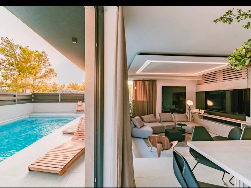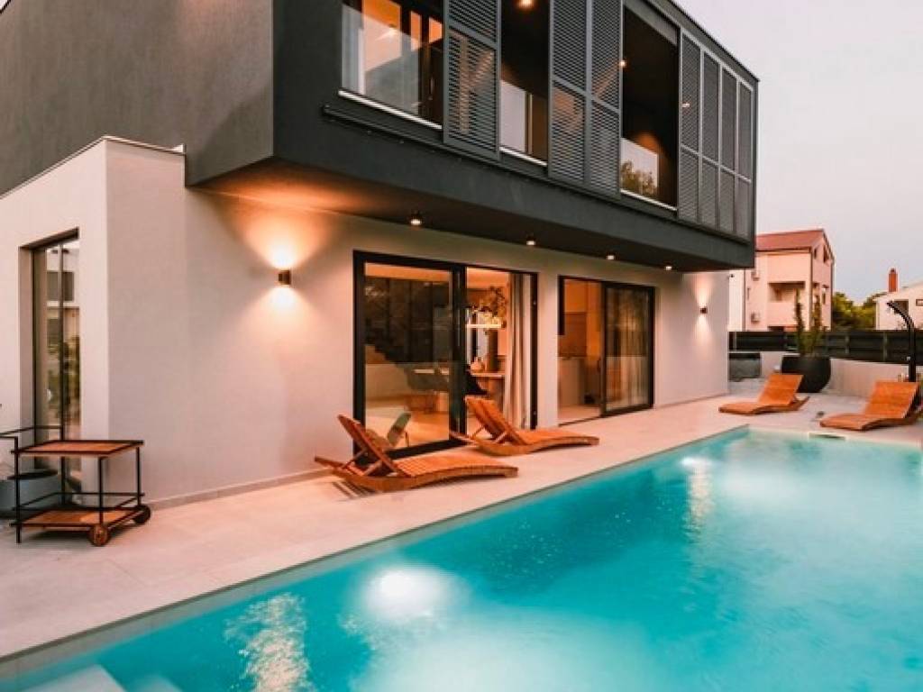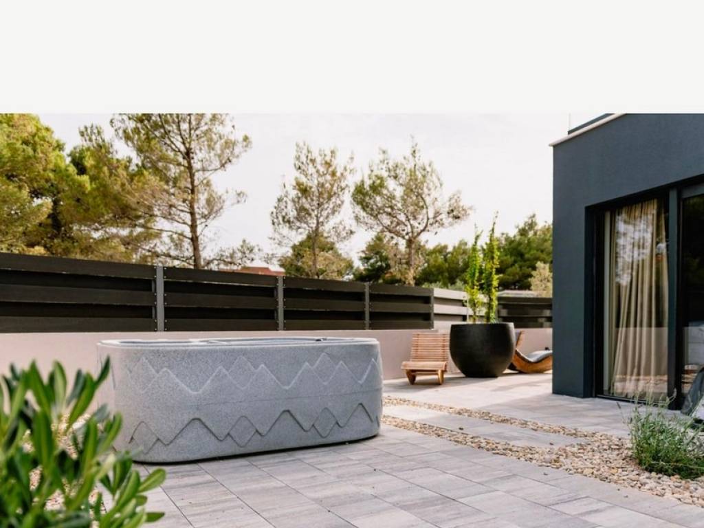 Luxury Villa with Pool, Jacuzzi & Sauna Designer Holiday Home in Dalmatia For sale: a stunning, modern holiday villa with a pool, jacuzzi, and sauna, located in a peaceful setting just a short drive from the coast.