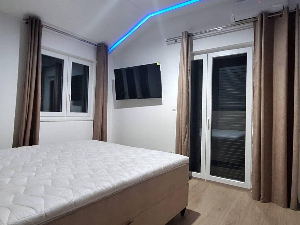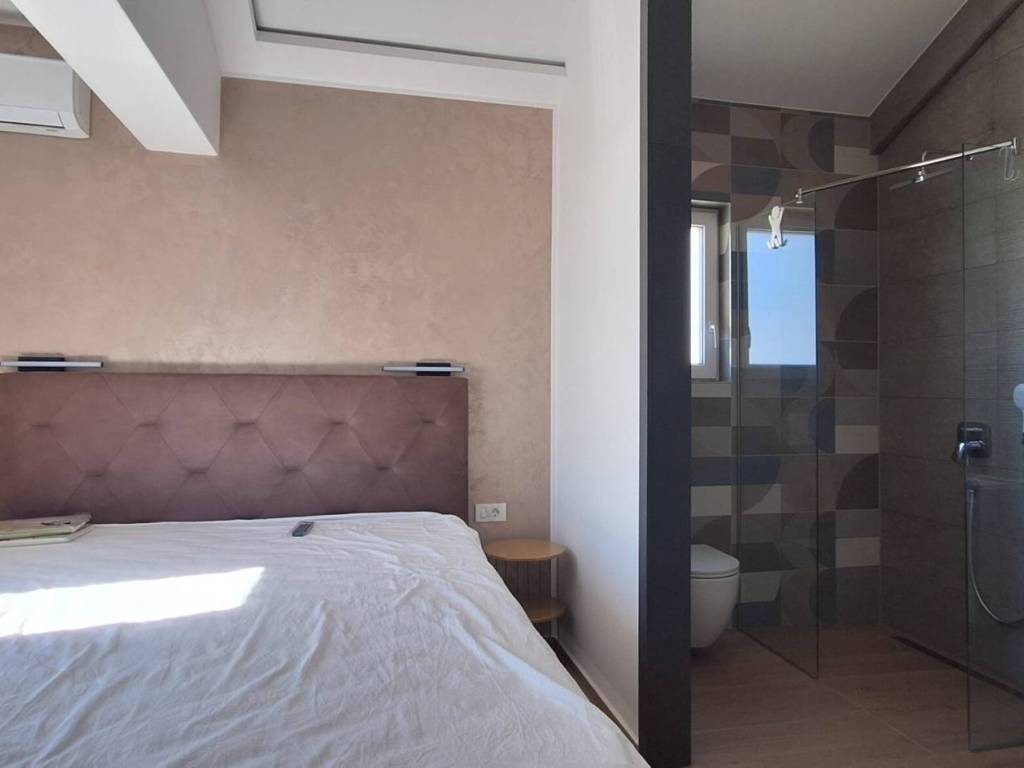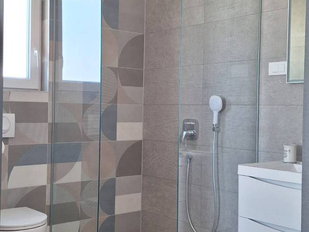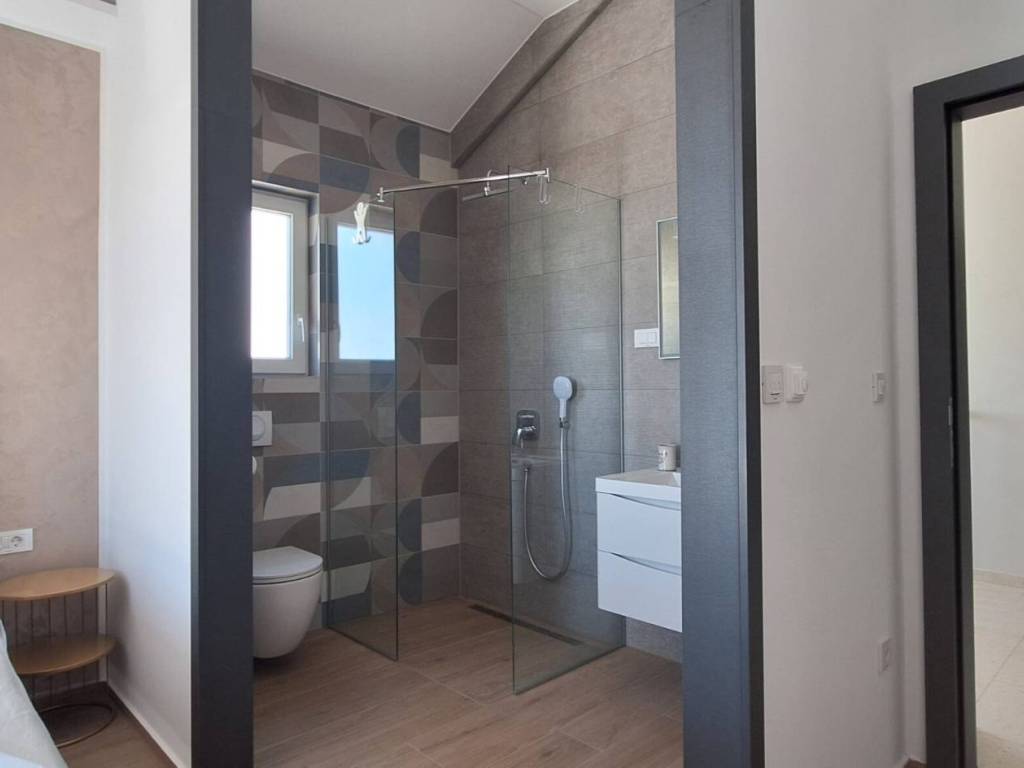 On the first floor, there are three bedrooms, each with its own bathroom, its own terrace with a view of the sea and Primošten, and two bedrooms also have a wardrobe, i.e.
