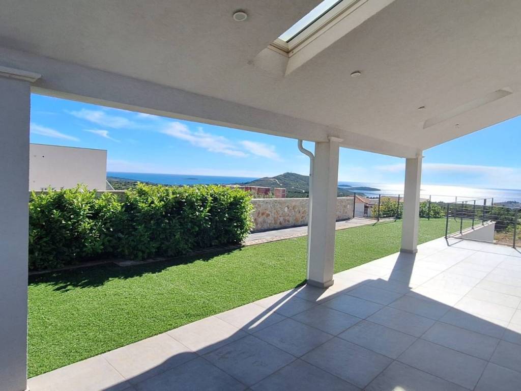 The ground floor consists of an open space living room with kitchen and dining room, storage room, bathroom, large covered terrace with an open view of the sea and the old part of Primošten, swimming pool, sun deck, garden and parling for several vehicles.