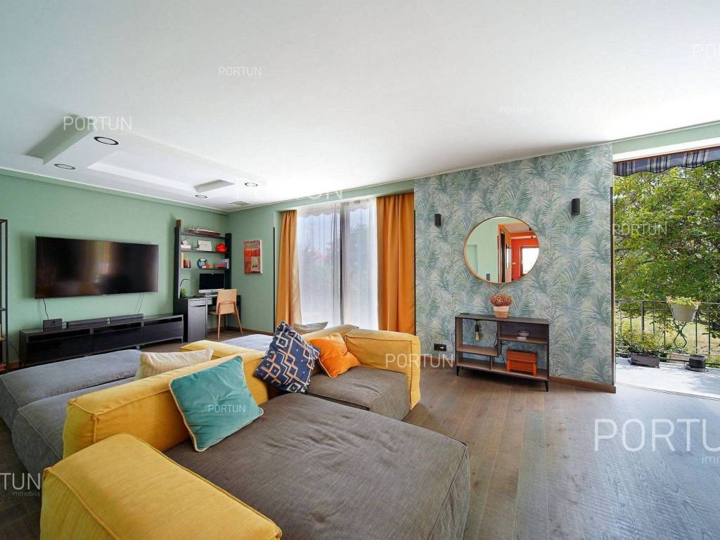 In an excellent location in Rovinj, a 5-minute walk from the beach and a 10-minute walk from the old town, a thoroughly renovated first floor house with a yard and parking is for sale. On the first floor, there is a modern apartment with two bedrooms, ideal for a family of four accustomed to a high level of comfort.The central part of the apartment is a common area where there is a modern kitchen, a dining table and a living room. The modern kitchen is equipped with high-end Siemens appliances and a custom-made stainless steel worktop. There is an abundance of natural light thanks to two large glass walls that lead to the balcony. The large openings on the south side are responsible for the fact that in the living room and dining room you can enjoy the view of the green park and the nearby pine forest.Part of the yard belongs to the apartment - a small green oasis that can be an ideal place for children to play, rest and relax.The apartment was thoroughly renovated in 2017, and on that occasion wall heating and cooling, a Mitsubishi heat pump, mahogany carpentry with triple glazing was installed, thermal insulation was installed on the external walls and roof, as well as all installations in that part of the house. The floors are covered with Anima Graphite tiles and excellent Listone Giordano oak parquet.The location of the apartment is in the southern part of Rovinj, in a quiet street not far from the hotel, the beach and the city center. In the neighborhood there are family houses, a park and a forest. The beach is only 500 meters away, which is convenient for lovers of sunbathing and swimming.LocationWith its cobblestone streets, old stone houses, medieval churches, endless vistas over the countryside and the sea, cute little shops, art galleries, wine bars and distinctive nature, Istria is not just a place to be, but a place to live! Situated on the north Adriatic Sea, on the western coast of the Istrian peninsula, there lies Rovinj, a charming town known for it's rich history, enchanting old town, extraordinary natural landmarks and sights. Peaceful and quiet street in Rovinj, is ideal for discovering the numerous attractions and facilities near the apartment:Sea Pebble beach 500 m Services Food store 400 m Inn or restaurant 300 m Elementary School 500 m Health center 700 m Sports and fun Soccer field 800 m Traffic Highway entry Kanfanar 14 km LayoutInternal stone stairs lead to the entrance to the apartment on the 1st floor. The flat with an open layout, with 93 square meters features a living room with a kitchen and a dining room, two bedrooms, one terrace, one loggia and one bathroom. The most important room in this apartment is: The living room with kitchen and dining room 43,58 m2 South facing Large glass walls Excellent orientation ensures plenty of natural light Three-seater Coffee table TV Modern lighting Two-line kitchen Modern design Equipped with household appliances Massive wooden table 8 ChairsParking spaces and particles Parking for two cars Part of the garden 208,00 m2 LoftAbout the houseThe apartment is located in a two-story house that stretches through ground floor, one above-ground floor and attic. The entrance to the house is on the ground floor level, from the north side, and vertical communication takes place via an internal staircase. The basic architectural characteristics of this well-maintained two-story building are: 3 Flats 4 Parking spaces External walls Styrofoam insulation 8 cm + Block brick wall Floor structure is made of hollow clay bricks Roof Pitched roof covered with clay tiles E.P.C. Awaiting EPC Built in 1969 Renovated 2017 (Apartment)Furniture and equipmentFurniture All furniture is included in the priceEquipment Modern lighting Modern sanitary wareJoinery Wooden joinery with triple glazing - Lift & Slide system Modern entry door Internal wooden doorsMultimedia TV in the living roomHeating and cooling Wall heating and cooling Heat pumps Mitsubishi Ecodan Combined water boiler ChimneyFlooringCeramic tiles Anima Graphite Anteroom BathroomOak parquet Listone Giordano Living room with kitchen and dining room BedroomsTop quality ceramic tiles TerracesServices Connection to the power grid with its own meter Three-phase current Private connection to the water supply network Water filtration system Pipes of the city gas pipeline brought to the edge of the plot Connection to the sewage system Paved public access roadArea calculationThe area of the apartment (92,58 m2) includes the areas of these spaces:Interior space = 82,44 m2*Terrace = 5,64 m2**Loggia = 4,50 m2****Areas are calculated with coefficient c= 1,00**Areas are calculated with coefficient c= 0,25***Areas are calculated with coefficient c= 0,75