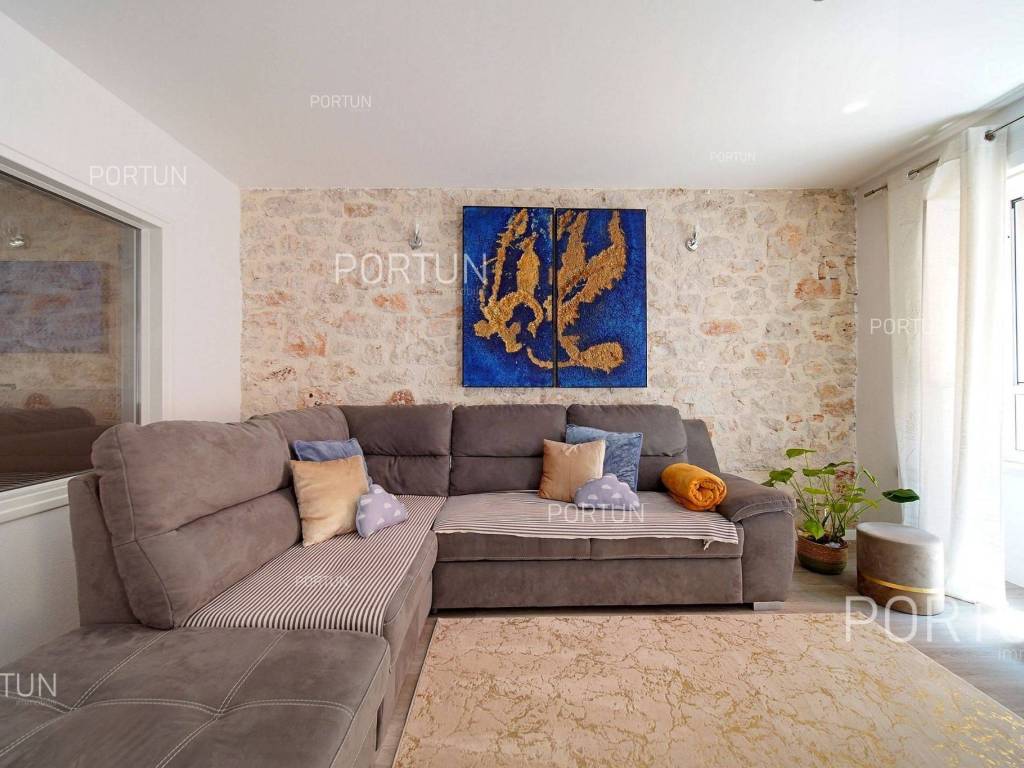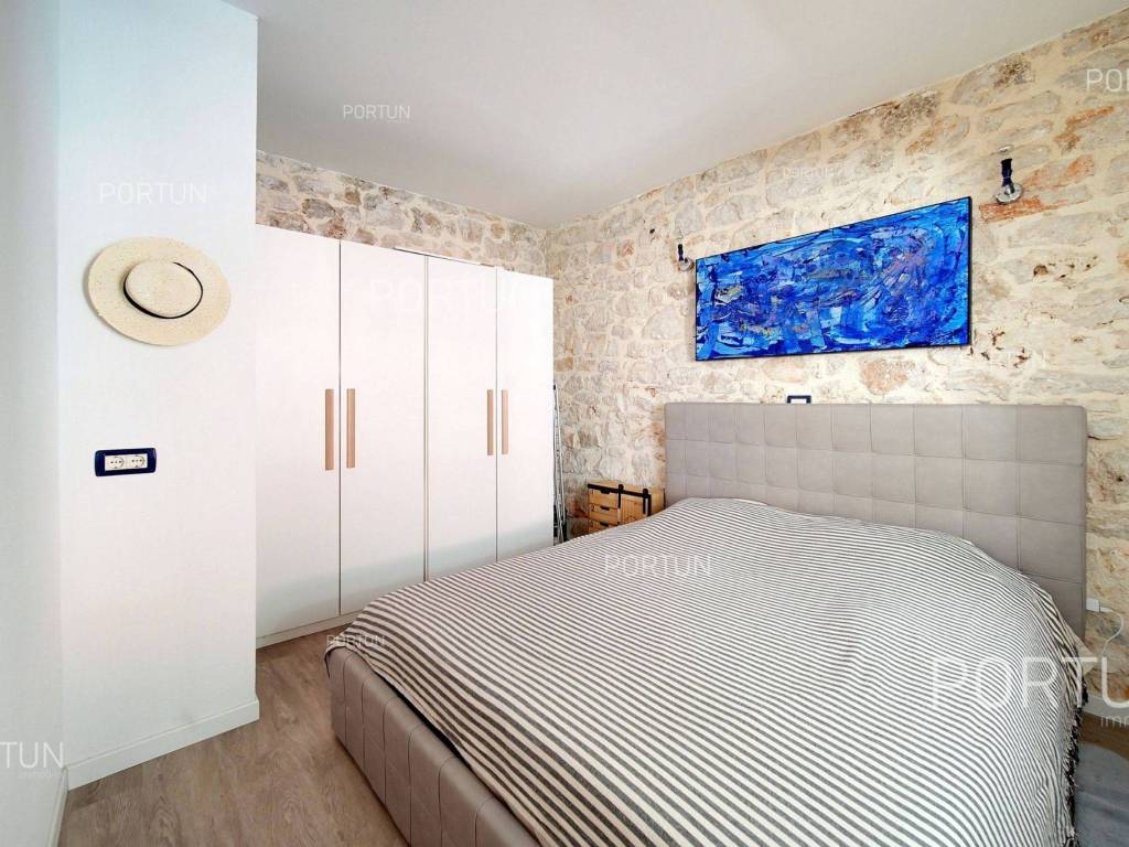 Located on the first floor of a stone house in one of Rovinj's most famous streets, this recently renovated apartment stands out as an excellent choice for all those who want to learn first-hand what a casual life in the heart of a Mediterranean town looks like. The trendy interior is made in natural tones as a combination of wooden textures, white surfaces and massive stone walls. A pleasant large sofa is placed in the middle of the living room - here you can rest in peace after wandering through the alleys of the old town. The second part of the room was occupied by the kitchen, next to which there is a counter with high bar stools. A detail that attracts attention is the former hearth, in the place of which there is a trapezoidal recess in the wall. The owners used it to place a larger refrigerator there, which left more space to move around the apartment.The bedroom, which is dominated by an old stone wall, is practically decorated and, in addition to a large bed, also contains two wardrobes. You will certainly be able to fit all your summer wardrobe here!The bathroom in warm, brown tones contains everything you need to dress up before an evening out on the town.Let's also mention that Baluota beach is only a few minutes' walk away, and if you want some peace and nature, it's enough to remember the boat that goes to Crveni otok, where you can enjoy the sea breeze in the shade of pine trees.If you are buying a rental property in Rovinj, be sure to check out this apartment that will delight your future guests with its equipment, location and ideal accommodation on the first floor!LocationThe Venetian influence on the picturesque towns by the sea and the fairytale inland make Istria an inevitable tourist destination and an ideal home for all those who love living in a natural environment. On the west coast of Istria is picturesque Rovinj - known for its romantic old town center, the protected Zlatni rt forest park of high aesthetic and botanical value, a rich gastronomic offer and tempting beaches. Sea Baluota beach 550 m Services Food store 100 m Cafe or bar 100 m Inn or restaurant 30 m Elementary School 200 m Kindergarten 400 m Health center 350 m Pharmacy 350 m Marina 30 m Sports and fun Mini soccer field 650 m Basketball court 250 m Bocce court 1,5 km Public swimming pool 2,8 km Forrestal park Punta Corrente 2 km Nearby towns Bale 14 km Sveti Lovreč 22 km Pazin 37 km Traffic Highway entry Kanfanar 15 km Pula Airport 40 km Attractions Special ornithological reserve Palud 10 km LayoutInternal straight stairs lead to the entrance to the apartment on the 1st floor. The flat with an open layout, with 37 square meters features a living room with a kitchen and a dining room, one bedroom, a bathroom with a shower and an entrance hall. ExtrasParticles for exclusive use Bicycle storage Parking lot Valdibora 320 mAbout the houseThe apartment is located in a stone house that extends through . The entrance to the house is on the ground floor level, from the southwest side, and vertical communication takes place via an internal staircase. The basic architectural characteristics of this stone house are: External walls Stone wall Wooden floor structure Roof Pitched roof covered with clay tiles E.P.C. Awaiting EPC Built approx. in 1800 Thoroughly renovated 2023 (Apartment)FurnitureFurniture All furniture is included in the priceJoinery PVC joinery with double glazing Wooden shutters Anti-burglary entry door Internal wooden doorsHeating and cooling Air conditioning Electric boilerFlooring Ceramic tiles Laminate flooringServices Connection to the power grid with its own meter Private connection to the water supply network Connection to the sewage system Stone-paved street Distance to the paved road 30 mDocumentationExtracted documents Floor study Usage permissionArea calculationThe indicated area of the apartment includes:Living area with normal height = 37,00 m2**Areas are calculated with coefficient c= 1,00Data source = Unofficial measurment of the space