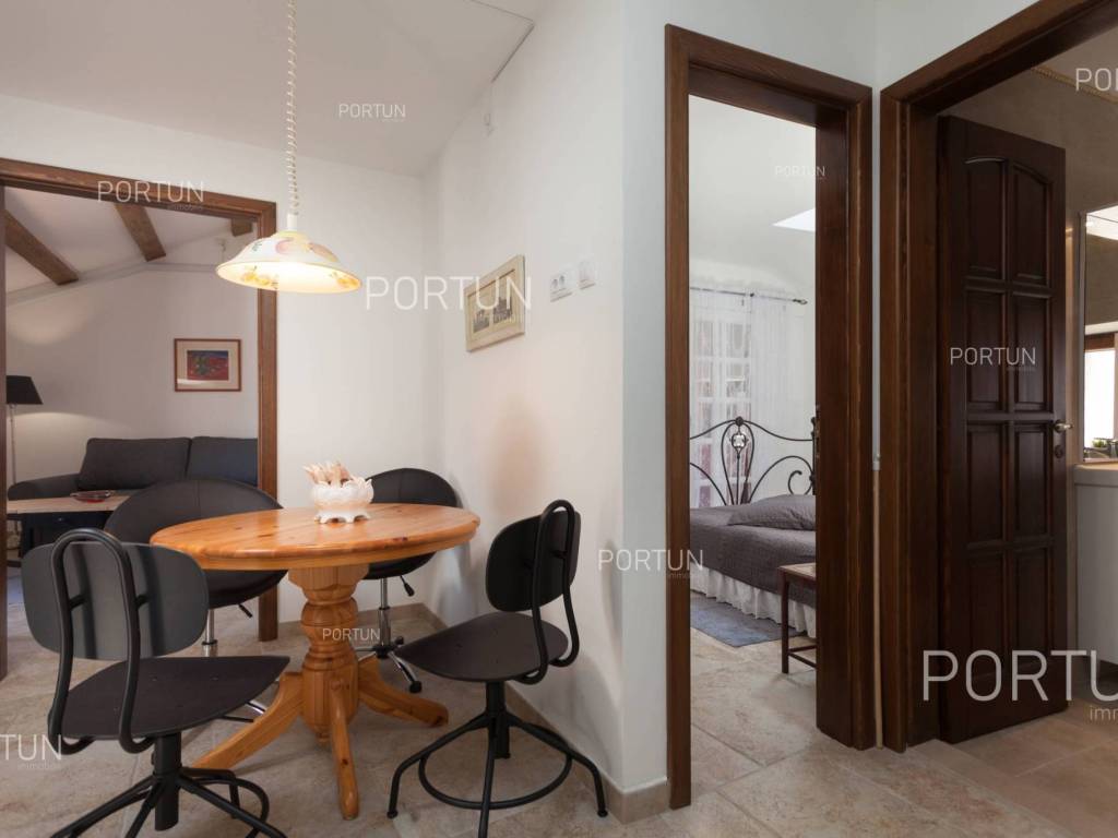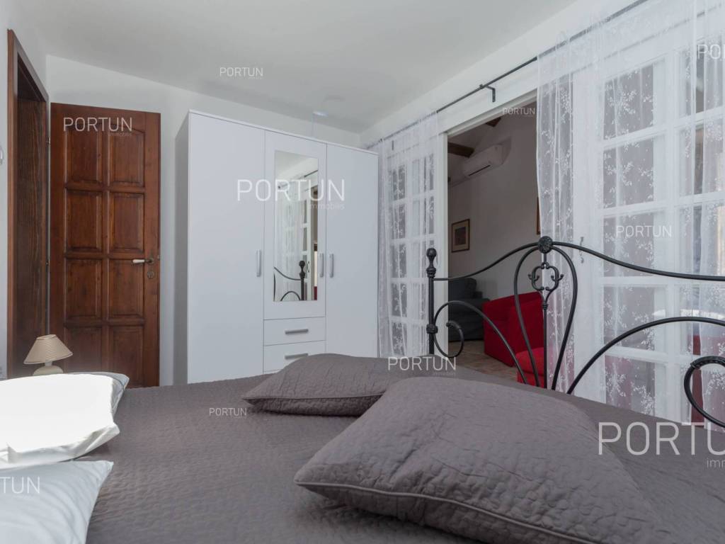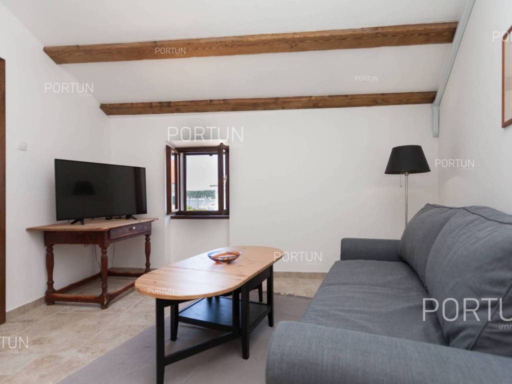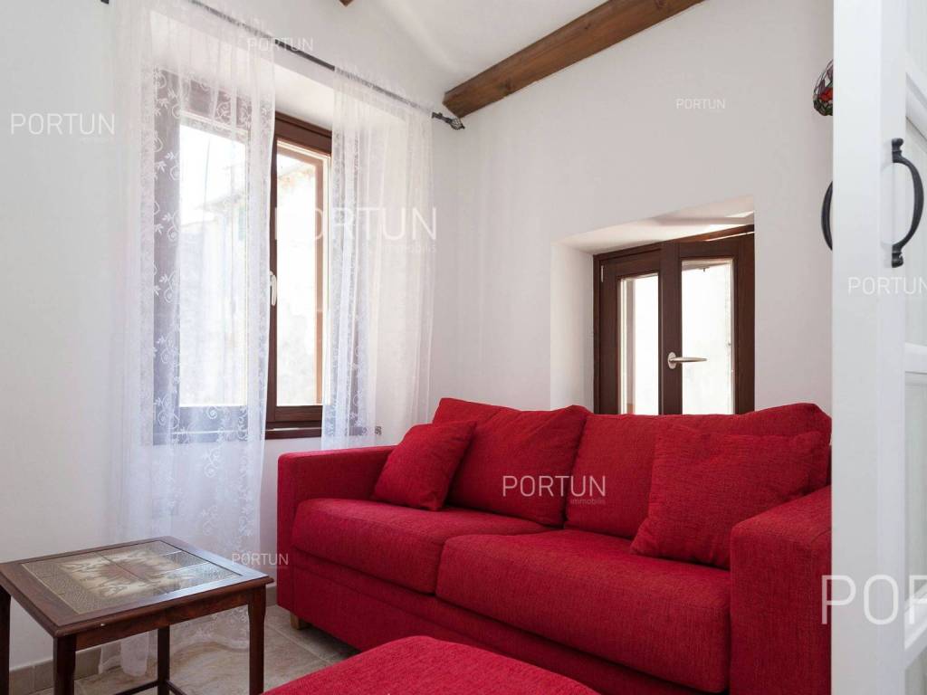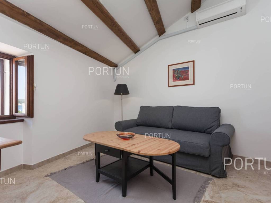 Furnished apartment in the center of Rovinj, just a few steps away from the market, has one bedroom, and two more can be accommodated on the sofa-bed in the living room. Located on the third floor of an old stone house, this thoroughly renovated apartment does not require any additional investment and is ready for immediate occupancy. It was built around 1800, and was thoroughly renovated in 2012. The apartment is located in an excellent location in the city center, close to the musuem and open market. It is 220 meters from the Valdibora parking lot and 350 meters from the beach. Apartment features a living room, a kitchen with a dining room, a bedroom, a bathroom with a shower, an entrance hall and a storage room. All furniture is included in the price, and the apartment has air conditioning. LocationIstria - a combination of a spectacular blue coast and a forested, green inland that represents a true oasis for anyone who would like to find their corner under the sun here. Rovinj is coastal Istrias star attraction best known for the old town webbed with steep cobbled streets, small squares and punctuated by a tall church tower rising from the highest point and offering a view of Rovinj archipelago. Stone-paved alley in the old part of Rovinj, where the apartment is situated, is ideal for discovering numerous facilities and attractions nearby:Sea | Beach 350 m Services | Food store 40 m - Inn or restaurant 10 m - Elementary School 300 m - Health center 700 m - Pharmacy 280 m - Marina 200 m Sports and fun | Basketball court 350 m - Public swimming pool 3 km - Forrestal park Punta Corrente 2 km Nearby towns | Bale 13 km - Poreč 34 km Traffic | Highway entry Kanfanar 15 km - Pula Airport 40 km Attractions | Special ornithological reserve Palud 10 km LayoutInternal straight stairs lead to the entrance to the apartment on the 3rd floor. The functionally decorated apartment, with 45 square meters comprises a living room, a kitchen with a dining room, one bedroom, a bathroom with a shower, an entrance hall and one storage room. Parking spaces Parking lot Valdibora 220 mAbout the houseThe apartment is located in a stone house that extends through ground floor and three above-ground floors. The entrance to the house is on the ground floor level, from the southwest side, and vertical communication takes place via an internal staircase. The basic architectural characteristics of this well-maintained stone house are: 3 Flats - 1 Business space External walls | Stone wall Wooden floor structure Roof | Pitched roof covered with clay tiles Built approx. in 1800 Thoroughly renovated 2012 (Apartment)FurnitureFurniture | All furniture is included in the priceJoinery | Wooden joinery with double glazing - Wooden shutters - Roof windows - Security entry door - Internal wooden doorsHeating and cooling | Air conditionerFlooring | Top quality ceramic tilesServices Connection to the power grid with its own meter Private connection to the water supply network Connection to the sewage system Stone-paved street | Distance to the paved road 38 mDocumentationExtracted documents | Floor study - ProjectArea calculationArea of the apartment includes (45,00 m2): Living area = 45,00 m2 x 1,00 = 45,00 m2Data source = Project