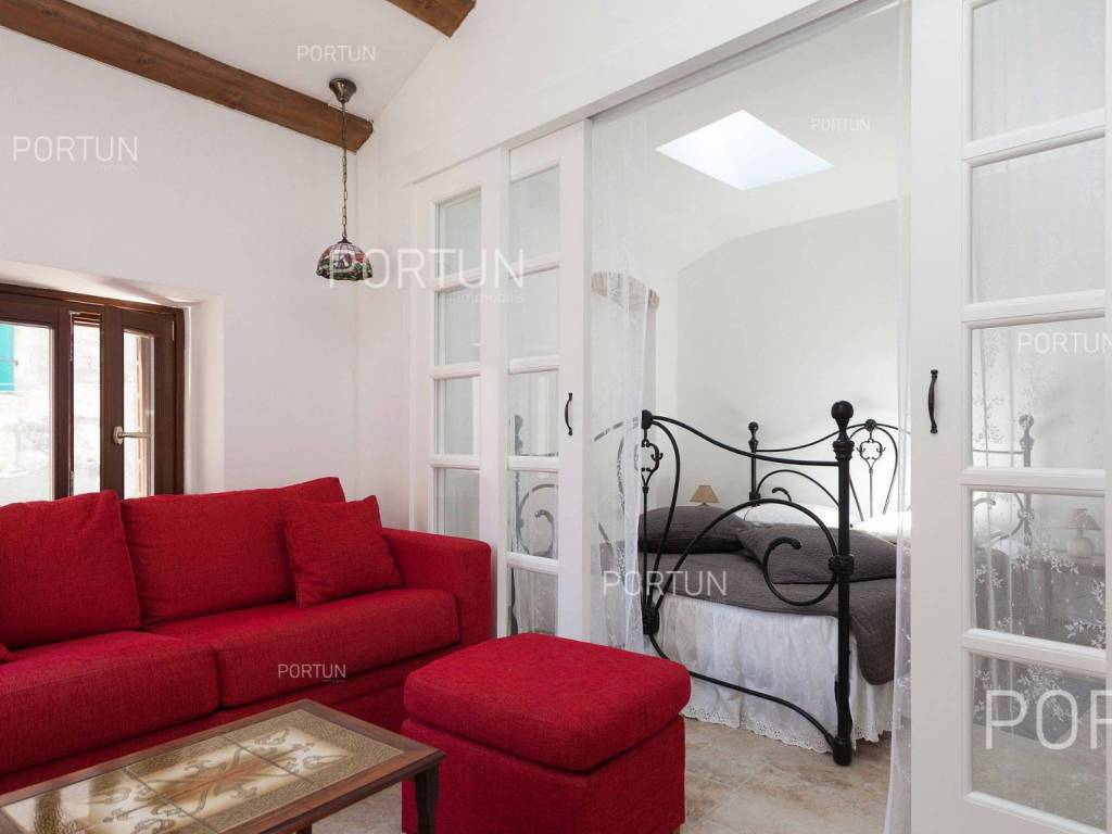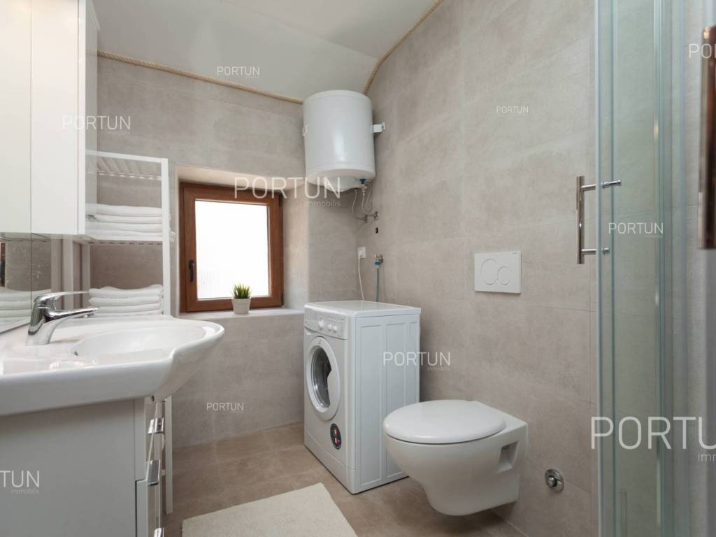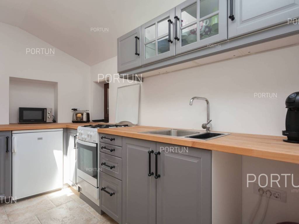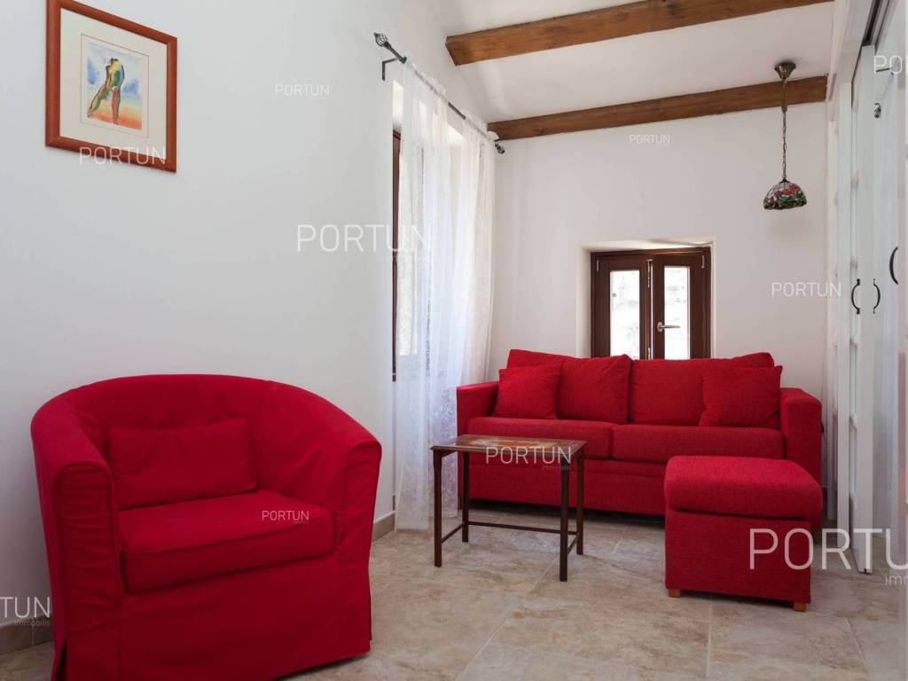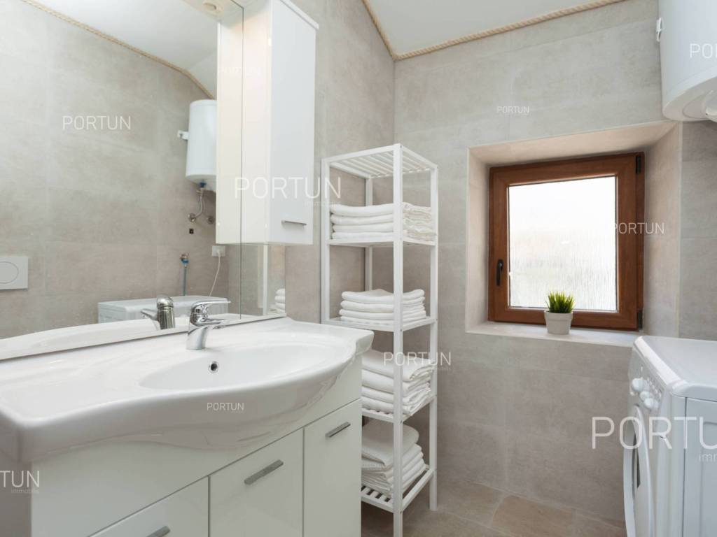 Furnished apartment in the center of Rovinj, just a few steps away from the market, has one bedroom, and two more can be accommodated on the sofa-bed in the living room. Located on the third floor of an old stone house, this thoroughly renovated apartment does not require any additional investment and is ready for immediate occupancy. It was built around 1800, and was thoroughly renovated in 2012. The apartment is located in an excellent location in the city center, close to the musuem and open market. It is 220 meters from the Valdibora parking lot and 350 meters from the beach. Apartment features a living room, a kitchen with a dining room, a bedroom, a bathroom with a shower, an entrance hall and a storage room. All furniture is included in the price, and the apartment has air conditioning. LocationIstria - a combination of a spectacular blue coast and a forested, green inland that represents a true oasis for anyone who would like to find their corner under the sun here. Rovinj is coastal Istrias star attraction best known for the old town webbed with steep cobbled streets, small squares and punctuated by a tall church tower rising from the highest point and offering a view of Rovinj archipelago. Stone-paved alley in the old part of Rovinj, where the apartment is situated, is ideal for discovering numerous facilities and attractions nearby:Sea | Beach 350 m Services | Food store 40 m - Inn or restaurant 10 m - Elementary School 300 m - Health center 700 m - Pharmacy 280 m - Marina 200 m Sports and fun | Basketball court 350 m - Public swimming pool 3 km - Forrestal park Punta Corrente 2 km Nearby towns | Bale 13 km - Poreč 34 km Traffic | Highway entry Kanfanar 15 km - Pula Airport 40 km Attractions | Special ornithological reserve Palud 10 km LayoutInternal straight stairs lead to the entrance to the apartment on the 3rd floor. The functionally decorated apartment, with 45 square meters comprises a living room, a kitchen with a dining room, one bedroom, a bathroom with a shower, an entrance hall and one storage room. Parking spaces Parking lot Valdibora 220 mAbout the houseThe apartment is located in a stone house that extends through ground floor and three above-ground floors. The entrance to the house is on the ground floor level, from the southwest side, and vertical communication takes place via an internal staircase. The basic architectural characteristics of this well-maintained stone house are: 3 Flats - 1 Business space External walls | Stone wall Wooden floor structure Roof | Pitched roof covered with clay tiles Built approx. in 1800 Thoroughly renovated 2012 (Apartment)FurnitureFurniture | All furniture is included in the priceJoinery | Wooden joinery with double glazing - Wooden shutters - Roof windows - Security entry door - Internal wooden doorsHeating and cooling | Air conditionerFlooring | Top quality ceramic tilesServices Connection to the power grid with its own meter Private connection to the water supply network Connection to the sewage system Stone-paved street | Distance to the paved road 38 mDocumentationExtracted documents | Floor study - ProjectArea calculationArea of the apartment includes (45,00 m2): Living area = 45,00 m2 x 1,00 = 45,00 m2Data source = Project