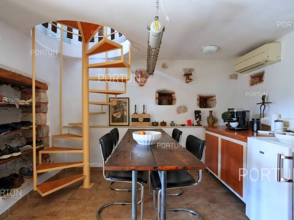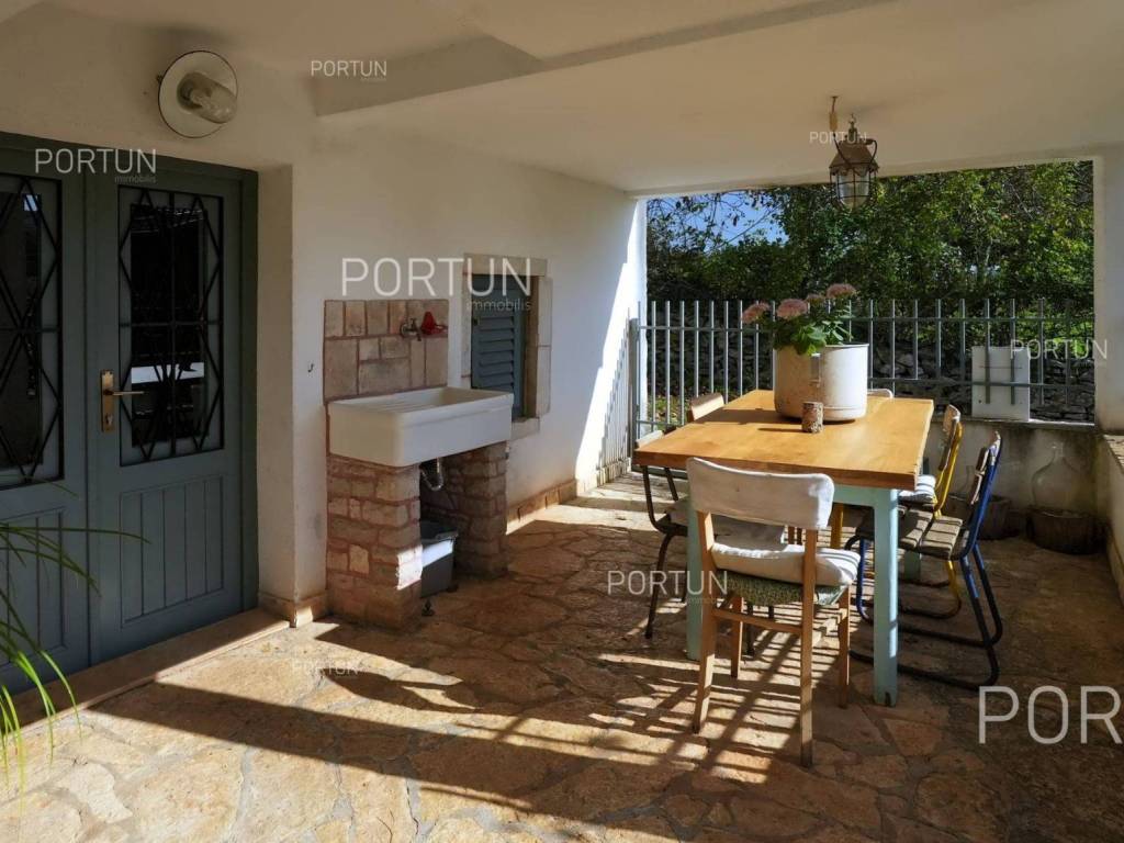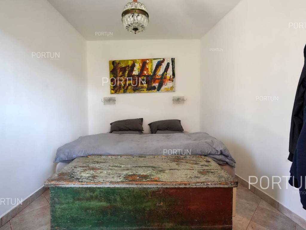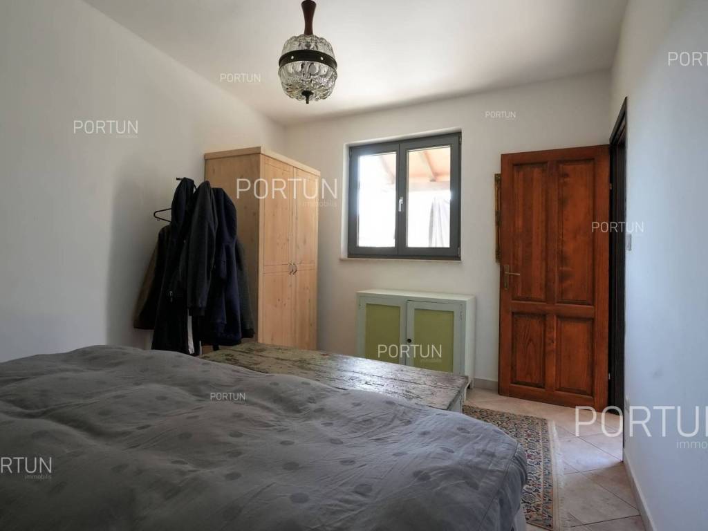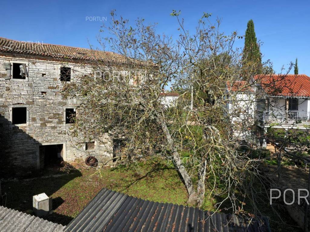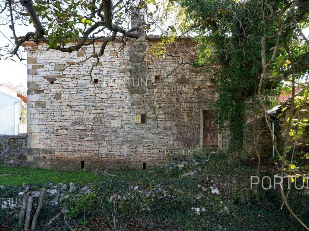 In this idyllic location, in a quiet village not far from Oprtalj, there is a property with two houses and a yard, perfect for those looking for peace and a wonderful view. The houses are located on the southwest slope, with an open view of wooded hills and meadows. In this location you can enjoy peace and quiet, because there are only a few rural houses in the area. The property is only a few minutes' drive from Oprtalj and Grožnjan, beautiful parts of Istria, famous for Parenzana and excellent inns offering local truffles. There are two houses on the estate. The larger house is completely abandoned and needs renovation. It originally had three floors, and the external dimensions are approximately 13 x 6 m. The smaller house was thoroughly renovated and modernized about 20 years ago and was subsequently legalized. It consists of two residential floors and an attic, with a total of 63 m of usable area. The bedroom and living room are on the first floor, while the bathroom, kitchen and dining room are on the ground floor. On each floor there is one large covered terrace facing south. An integral part of the property is an additional yard on the other side of the street, with an area of 737 m, where a parking lot, garden or swimming pool can be arranged. The ideal location offers an opportunity to build your own cottage or holiday home - the proximity of Grožnjan, Oprtlje and Parenzana are strong arguments in favor of this special property. LocationOne of the most developed and beautiful regions of Croatia is green-blue Istria, known as the "new Tuscany", which represents a combination of unique natural sights and rich cultural heritage. Quiet location in northern Istria, where the house is positioned, offers numerous amenities:Sea | Beach 27 km Services | Inn or restaurant 3 km - Elementary School 3 km Sports and fun | Thermal spa Istarske toplice 12 km Nearby towns | Grožnjan 12 km - Novigrad 30 km Traffic | Nearest highway entry 18 km Attractions | Protected forest in the Mirna river valley 10 km About the propertyThe estate which extends to 1.307 square meters comprises: House for adaptation | 3 Floors - The largest external dimensions are 13 m x 6 mRenovated house | 2 Floors - 62,85 m2EquipmentJoinery | Wooden joineryHeating | Air conditioning - Furnace - woodFlooring | Ceramic tilesServices Connection to the power grid Connection to the water supply network Septic tank Paved public access roadReal estate statusThe land is located entirely within the boundaries of the construction area. DocumentationExtracted documents | Decision on the constructed condition of the buildingArea calculationArea of the house includes (approx. 242,85 m2): Interior space (House for adaptation) = 180,00 m2Usable surface (Renovated house) = 62,85 m2**Area is given with accrued coefficientsThe total land area including the footprint of the building(s) amounts to 1.307 square meters. Data source = Cadastre data