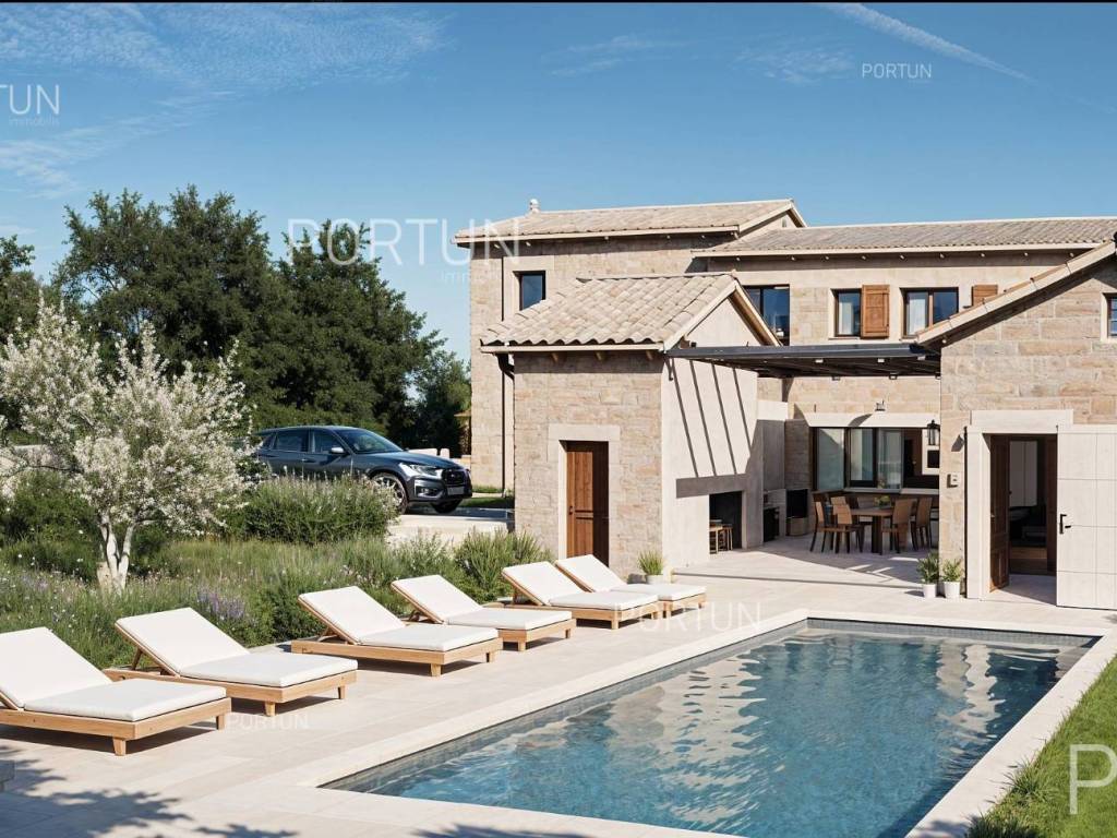 In a peaceful village in central Istria, not far from Kršan, lies this authentic 19th-century stone house in need of renovation. Alongside the old L-shaped stone house, spread over two floors with a footprint of 187 m, there is also a single-story barn with a surface area of 12 m. The 490 m plot is entirely located within the construction zone, and there is a renovation project designed to transform the property into a luxurious holiday home with a swimming pool. The tranquility and natural beauty of the surroundings make this property an ideal investment. The stone exterior walls have retained the authenticity of the Istrian style, while the southwest orientation ensures natural light throughout the day. The renovation project envisages the transformation of this house into a luxury holiday home with modern amenities such as a swimming pool, while maintaining the charm of the historic building. A building permit has been obtained based on the project. The 490 m plot of land provides ample space for privacy and additional amenities. The property is located within the boundaries of a construction area, which allows for legal construction and expansion according to the needs of the future owner. This is an investment opportunity with the potential for a return on investment through tourist rental or personal use. The location of this property further contributes to its attractiveness. The beaches are only 14 km away, and all basic amenities such as shops, cafes and restaurants are within 5 to 11 km. The primary school is 15 km away, making this property suitable for family use. Nature lovers will enjoy the nearby Sveti Šimun hiking trail, only 18 km away. Located in a quiet village surrounded by nature, the property offers panoramic views of Učka and the surrounding valleys. The distance from Pićan and Labin is 14 and 20 km, respectively, while the motorway entrance and Pula airport are 15 and 57 km away. The historical and cultural landmark of Glagolitic Alley, 25 km away, completes the offer of this location. For additional information or to arrange a viewing, please feel free to contact us. Don't miss the opportunity to become the owner of this unique property in the heart of Istria!. Distances from the propertySea | Beach 14 km Services | Food store 5 km - Cafe or bar 5 km - Inn or restaurant 11 km - Elementary School 15 km Sports and fun | Saint Simeon hiking trail 18 km Nearby towns | Pićan 14 km - Labin 20 km Traffic | Highway entry Vranja 15 km - Pula Airport 57 km Attractions | Monument - Glagolitic Lane 25 km About the propertyThe estate which extends to 490 square meters comprises: House | 2 Floors - Covered area of the building 187,00 m2Stable | Covered area of the building 12,00 m2ProjectA building permit has been issued for an ambitious project to reconstruct a charming traditional stone house and its accompanying barn, aiming to preserve the authentic Istrian spirit while incorporating modern design.The ground floor is designed as a spacious living area, including an elegant living room, a sophisticated dining room, and a modern kitchen. It also features a luxurious bedroom with a walk-in wardrobe, a private bathroom, an additional toilet, an exclusive wine cellar, and a lavish wellness area with a sauna, perfect for relaxation. Practical auxiliary spaces ensure functionality and comfort.The first floor is envisioned as a more intimate space with two spacious bedrooms, a cozy children's room, and two modernly equipped bathrooms.The auxiliary building, planned as storage for loungers and an additional toilet, discreetly complements the overall project.This project harmoniously combines tradition with modern luxury, creating an ideal space for enjoyment and relaxation.Services Connection to the water supply network The mains electricity (220V): nearby Unpaved public access road | Distance to the paved road 40 mReal estate statusThe land is located entirely within the boundaries of the construction area. Area calculationThe land area amounts to 490 square meters. Data source = Cadastre data