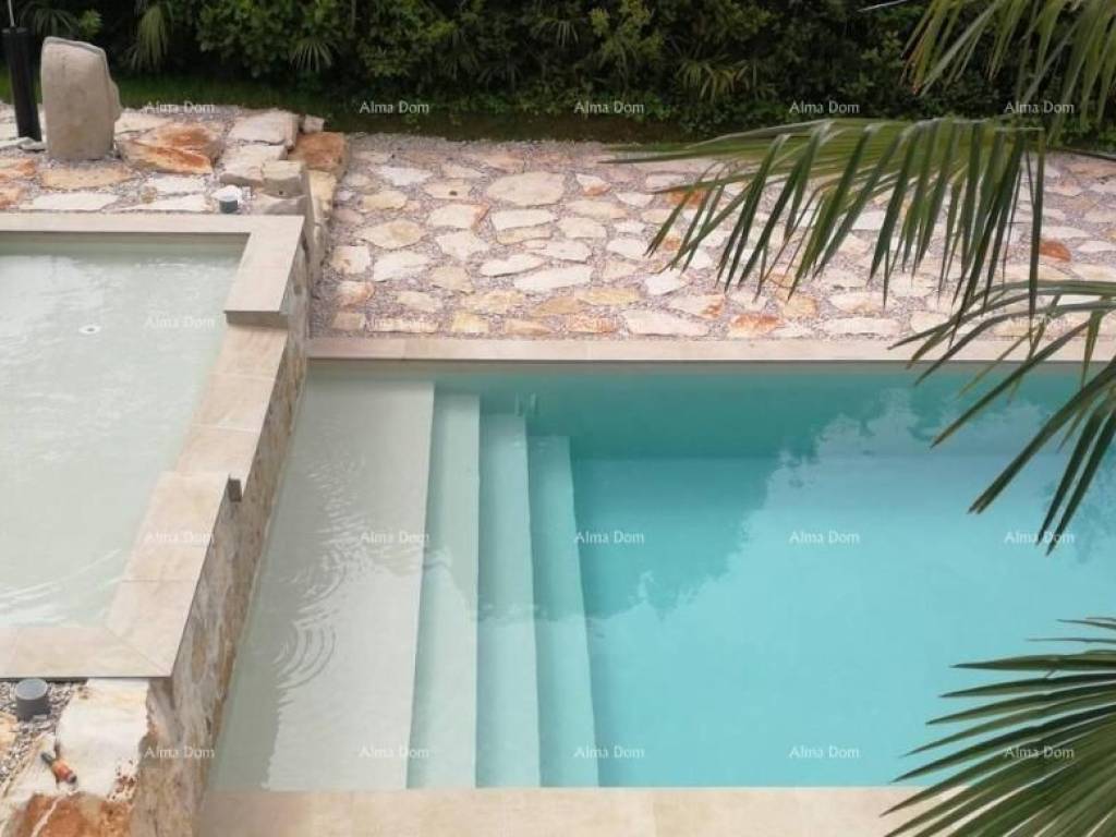 In a peaceful and green area of Umag, just a short walk from the sea, a house with a swimming pool, covering a total area of over 370 m², is for sale. Situated on a well-maintained plot with complete privacy, this property is perfect for multi-generational living or as an investment for tourist rental.The house is divided into three completely separate apartments, each with its own entrance, terrace, and private part of the yard. In front of the house, there is a swimming pool measuring 10x4 m with a waterfall, surrounded by Mediterranean plants, palm trees, and old olive trees, creating the ambiance of a true oasis of peace. The special atmosphere is enhanced by three stone fireplaces, one located in the living room and two on the outdoor terraces—ideal for relaxed gatherings throughout the year.All apartments are equipped with air conditioning for heating and cooling, while the property’s security is ensured by video surveillance with remote access. The yard is already prepared with infrastructure for an electric charging station.Property structure:Apartment 1: 3 bedrooms, 2 bathrooms, a large living room with a kitchen and dining area, a terrace with a fireplace, a landscaped garden, and a storage room (total of 185 m²).Apartment 2: 2 bedrooms, 2 bathrooms, a living room with a fireplace, kitchen, dining area, terrace with access from multiple rooms, high ceilings (147 m²).Apartment 3: a compact apartment with a living room and kitchen, bathroom, bedroom in the gallery, and a small terrace (40 m²).The surroundings offer tranquility, privacy, and proximity to all amenities—beaches, shops, restaurants, and promenades are accessible within minutes.For more information, please contact:Azra:+385 91 611 5706+385 98 420 885azra@almadominvest.com