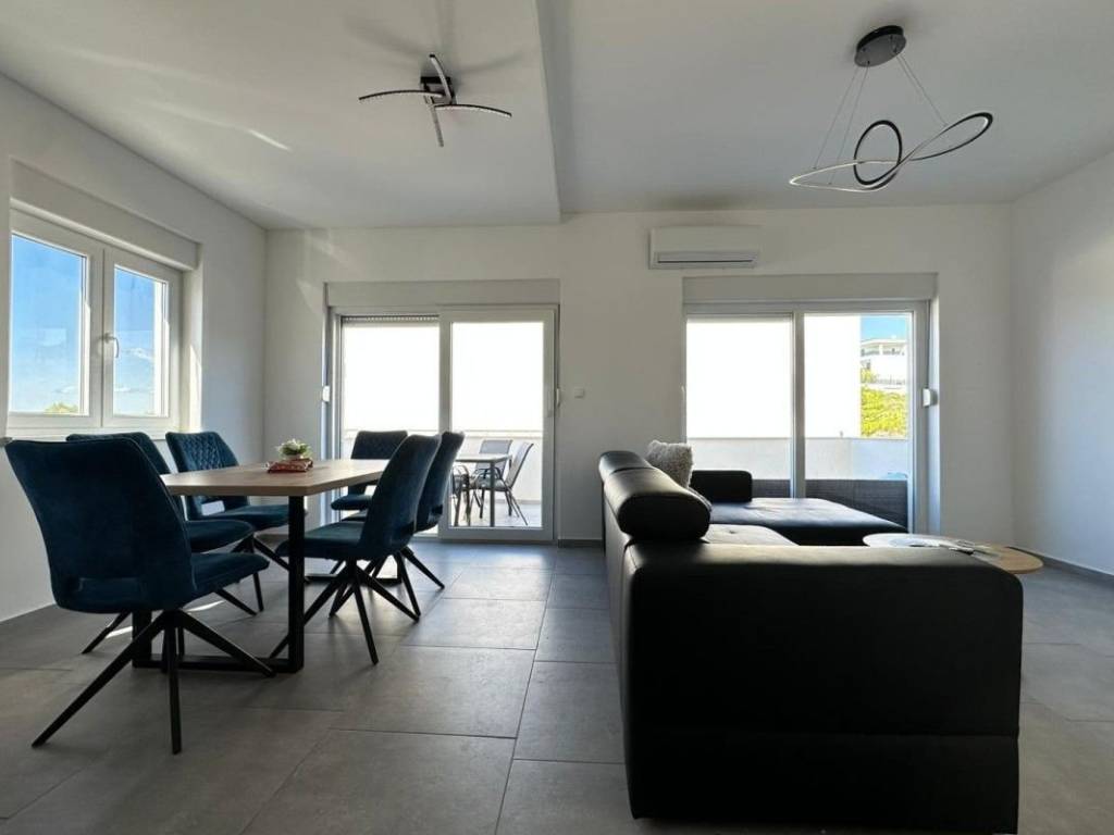 For sale is a comfortable two-bedroom apartment in a newly constructed residential building with a total of 5 apartments and assigned parking spaces. There is one two-bedroom apartment on each floor of the building, and each apartment is accessed via internal stairs. The apartment consists of two bedrooms, a bathroom, a spacious living room, and a terrace, with an assigned parking space in front of the building. The apartment also comes with a storage room in the building’s basement. The apartment is oriented southeast-southwest-west, and from the terrace and living room there is a sea view. The apartment is fully furnished and ready to move in or start renting out. It is sold with all furniture and equipment included. The building has just been completed and is located a one-minute walk from the beach and the clear, pristine sea. Nearby, there is a hotel, a promenade, a beach, and various amenities, while the center of Rogoznica is just a few minutes’ drive away.