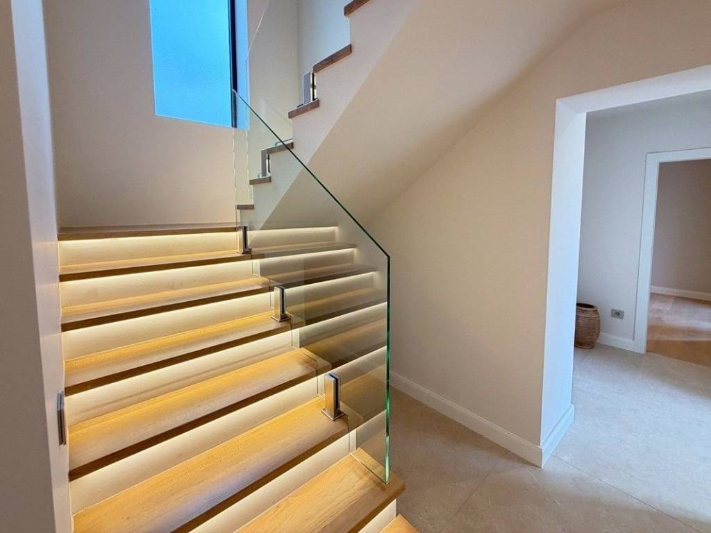 We are selling a luxurious, recently renovated smart house located in an exceptional location – just 10 meters from the sea, in one of the most desirable parts of Zadar.   The property is spread over a plot of 750 m2, with a landscaped and spacious garden, a heated swimming pool and a complete smart control system (lighting, blinds, air conditioning, entrances, swimming pool and numerous additional functions) via mobile phone, voice or remote control.   The villa is located just a few steps from the beach, close to all amenities necessary for life.   It consists of a ground floor and an upper floor.   Ground floor • 3 bedrooms, each with its own bathroom • Entertainment room • Laundry room / laundry room • Loggia • Access to a beautiful terrace surrounded by olive trees • Access to a heated pool (38.5 m2) and a sundeck • Space for additional amenities + storage   First floor • Large, bright open space living room and kitchen • Two large sliding doors with access to the terrace and a breathtaking view • Storage room • Guest toilet • Spacious master bedroom with bathroom, dressing room and sea view   Almost all rooms offer a beautiful panoramic view of the Zadar Channel and the surrounding islands. In the courtyard there is a heated pool (38.5 m2), a sundeck and carefully selected Mediterranean plants that further complete the atmosphere.   Behind the house there are two storage rooms, with the possibility of converting one into a gym or wellness. In front there is a paved parking lot for 5 vehicles, with elegant lighting, landscaped greenery and a high fence that ensures privacy.