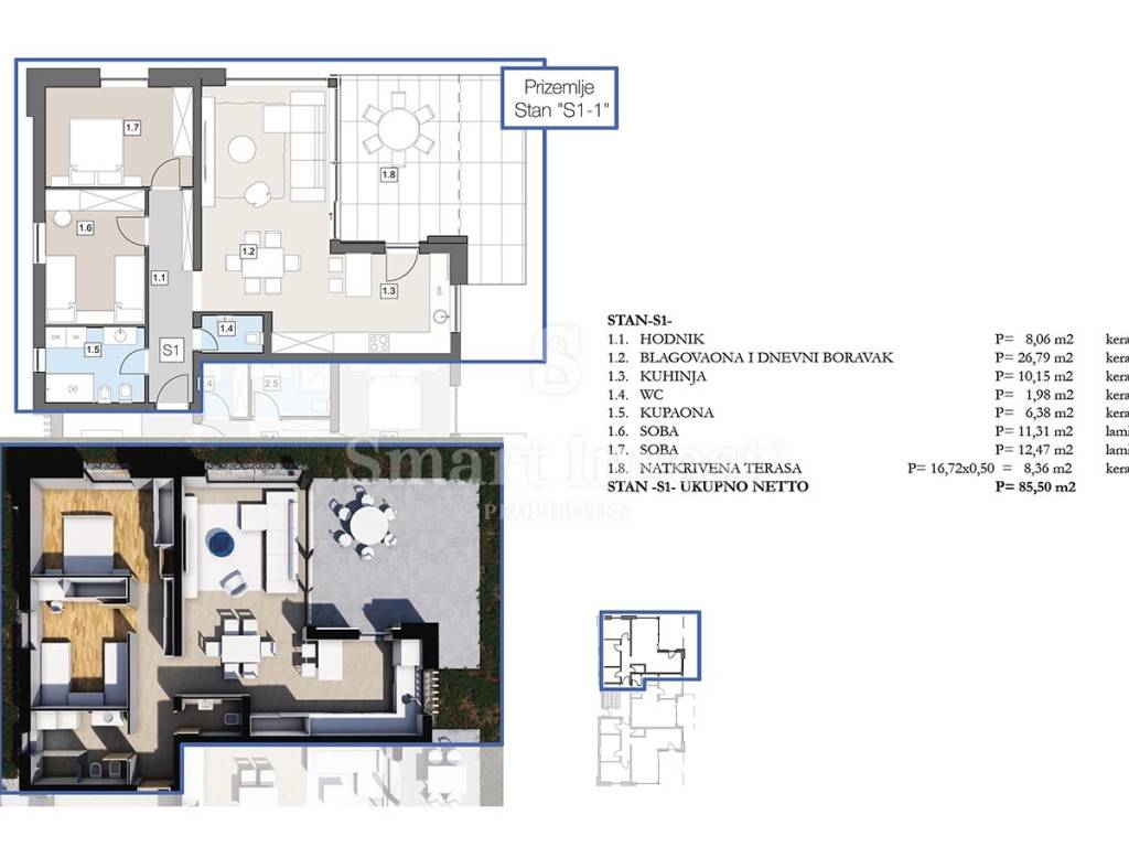 This newly built apartment, located within walking distance of all necessary amenities, represents an excellent opportunity for a pleasant family life, but also as an investment for tourist rental.