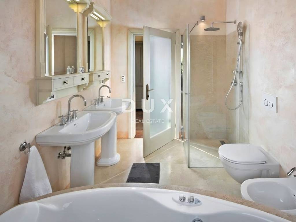 The impressive garden is completely enclosed by a stone wall and is decorated with Mediterranean plants and vegetation, and enriched with six olive trees about 250 years old, and the perfect harmony is provided by a 55 m swimming pool with a sunbathing area paved with Istrian stone.