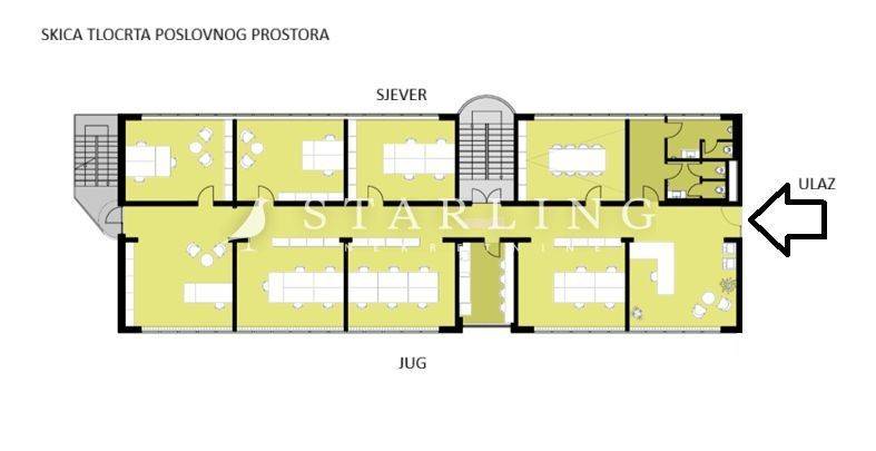 Poslovni prostor se sastoji se 9 zasebnih prostorija, zajedničke odvojene blagovaonice, te 2 kupaonice (muška i ženska).