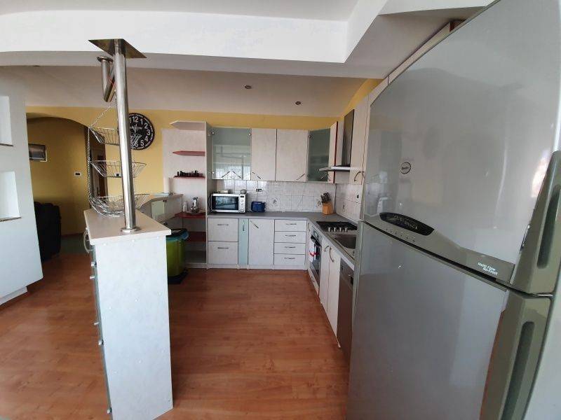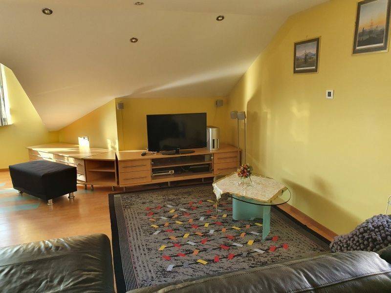 Stan za najam: Zagreb, Gornji Bukovac, Bukovačka, 2-sob, 85 m2, potkrovlje, 2 kat, kompletno namješten, 850 € sa uključenim režijama + polog 850 €Iznajmljuje se uređeni stan (2021. god.) u kući, visokoj katnici, u potkrovlju kuće (2 kat).Kuća se sastoji od 3 etažne jedinice od kojih svaka zauzima cijeli kat, izgrađena je 1980. god. a stan je kompletno uređen 2021. god. te ima zaseban ulaz (zajedničko ulazno stepenište na 1 kat, a do stana zasebno unutarnje drveno stepenište). Stan se sastoji od prostranog dnevnog boravka sa blagovaonicom i kuhinjom koja je sa šankom izdvojena iz dnevnog boravka (plinska peć, frižider, ledenica, suđerica, mikrovalna), spavaće sobe, kupaonice sa kadom, wc-om i bideom (perilica i sušilica rublja) i hodnika. Grijanje plinsko etažno, klima. Sve režije uključene u cijenu najma.Jedno parkirno mjesto u dvorištu.Zona autobusa - stajalište 1 min. pješice do Maksimirske ili KaptolaŽivotinje i pušaći - NEPrednost zaposleni parNajam minimalno 1. godinaDostupno odmah