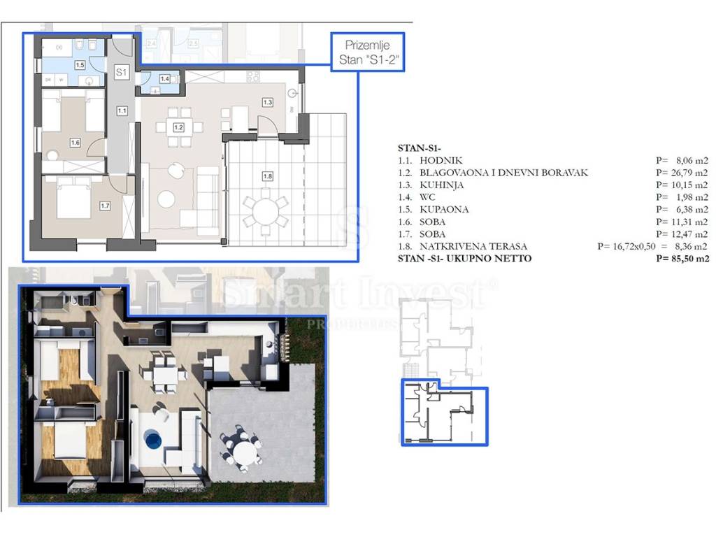 This newly built apartment, located within walking distance of all necessary amenities, represents an excellent opportunity for a pleasant family life, but also as an investment for tourist rental.