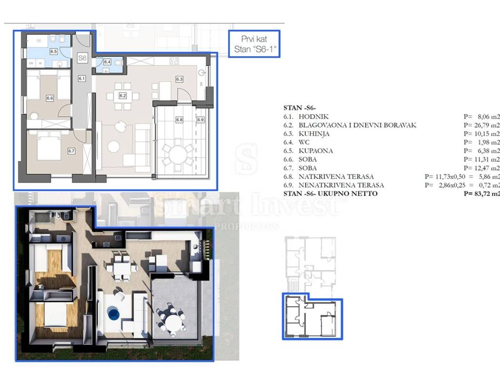 Piso de tres habitaciones nuevo, primera planta, Labin