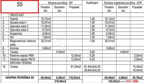 On the second floor of a small residential building in Stupnik, apartment S5 is for sale, an exclusive three-bedroom apartment with a large roof terrace. The interior space is 84.44 m2, with a terrace of 9.38 m2 and a dominant roof terrace of 91.24 m2, which provides a unique private exterior ideal for a lounge area, jacuzzi or family gatherings. The layout includes three bedrooms, a bathroom, an additional toilet, a kitchen and a spacious dining room and living room of over 30 m2. The price includes two parking spaces PM9 and PM10. The project is being carried out according to modern standards, and completion is planned by the end of 2026, which makes this apartment a rare opportunity in the segment of new buildings with roof terraces.