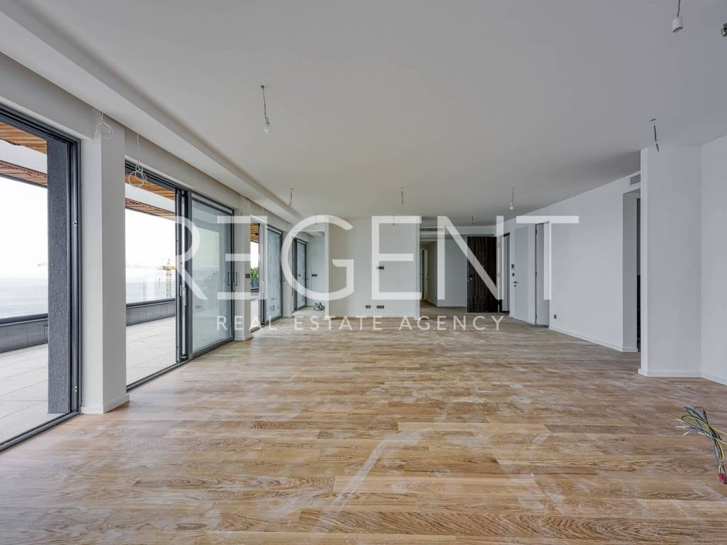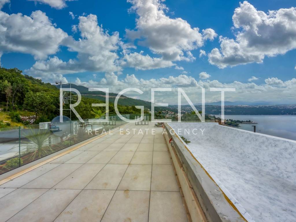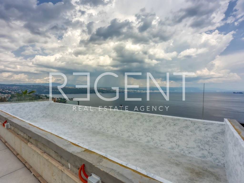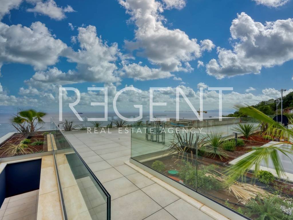 In the city of Opatija, often called the "pearl of the Adriatic". Opatija is known for its rich history, fascinating architecture and proximity to the crystal clear Adriatic Sea, providing its visitors with a unique holiday experience. In the project of starting construction, which includes 8 luxury apartments, on the 5th floor of the building is located a luxurious five-room apartment NKP 274.93 m2. The penthouse is located on the top floor. Given its large area, the feeling is unique for the future tenant, who can freely enjoy the privacy of their apartment, away from other views. With direct access from the elevator, we enter the apartment, with as many as 4 bedrooms, two of which have their own wardrobe and bathroom. The open space living room with kitchen and dining room provides access to a beautiful, covered terrace and private pool. The apartment also has a pantry, separate wardrobe, toilet, two bathrooms and a storage room. This apartment also offers four garage parking spaces and a storage room in the basement, which is extremely practical given the limited parking space in popular tourist destinations such as Opatija. Living in this apartment means enjoying a luxurious and comfortable living space, surrounded by beautiful nature and a spectacular sea view. Price excluding VAT.