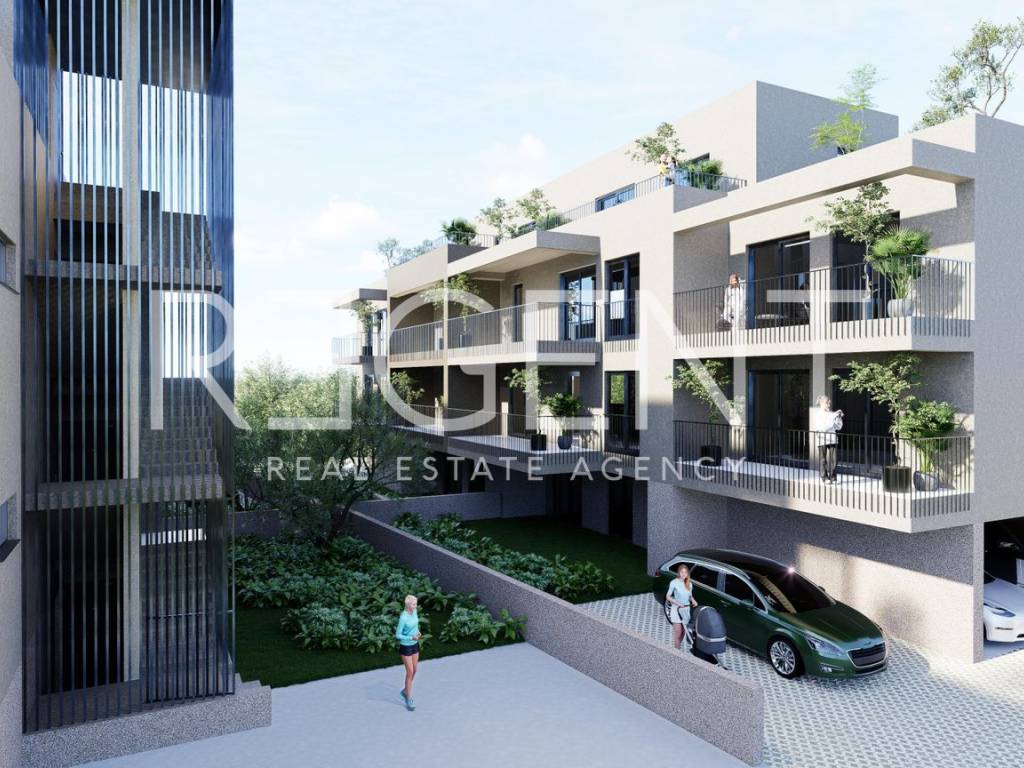 We mediate in the sale of a modern two-room apartment in a new building located in Trogir. The apartment is located on the ground floor and covers a total area of 105.98 m², including a secured parking space of 12.50 m². This property is characterized by top quality construction and carefully selected materials, providing future owners with a comfortable and luxurious living space. Apartment layout: Entrance area, hallway and wardrobe (8.62 m²) WC (1.66 m²) Kitchen, dining room and living room (18.23 m²) Bedroom 1 (9.92 m²) Bedroom 2 (7.94 m²) Bathroom (3.61 m²) Garden 1 (28.76 m²) Garden 2 (14.74 m²) Parking space (12.50 m²) Apartment characteristics: Top construction with modern design Anthracite carpentry with high-quality sliding walls and blinds with electric lifting Underfloor heating in the toilet, bathroom and living room Air conditioners in all rooms Preparation for electric vehicle charging station Video surveillance of the parking lot and entrance-exit ramp Additional options (for an additional fee): Smart home system Additional air conditioners Garage space Underfloor heating in the bedrooms The apartment is located in an excellent location, close to all necessary amenities such as shops, restaurants, cafes and beaches, making it ideal for permanent residence or tourist rental. For more information and to arrange a viewing, feel free to contact us.