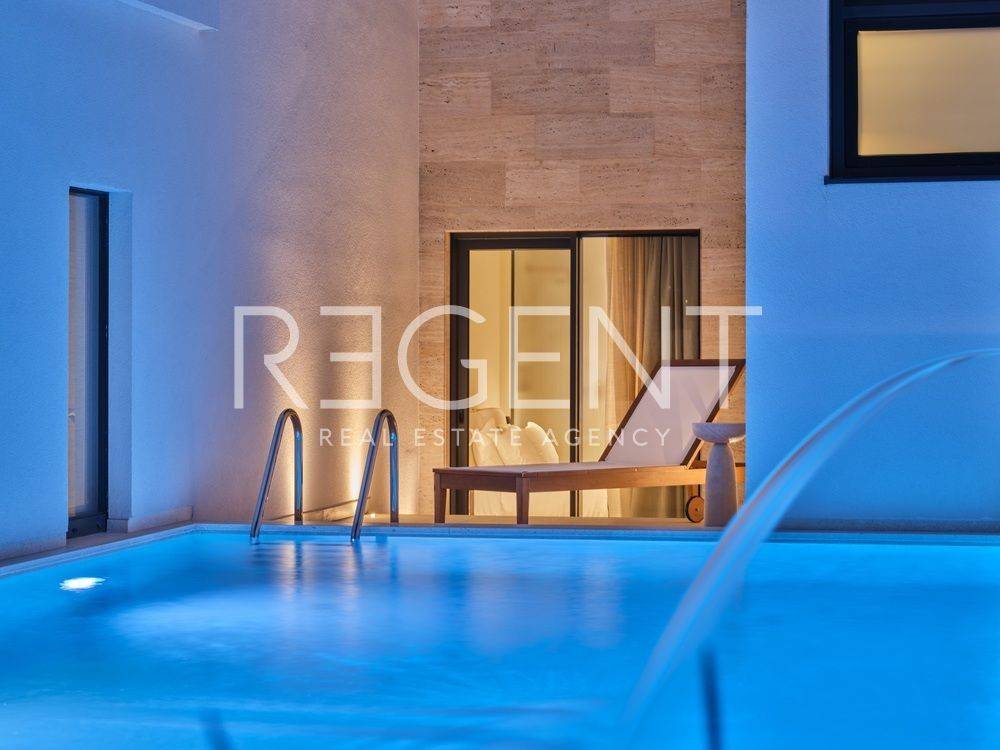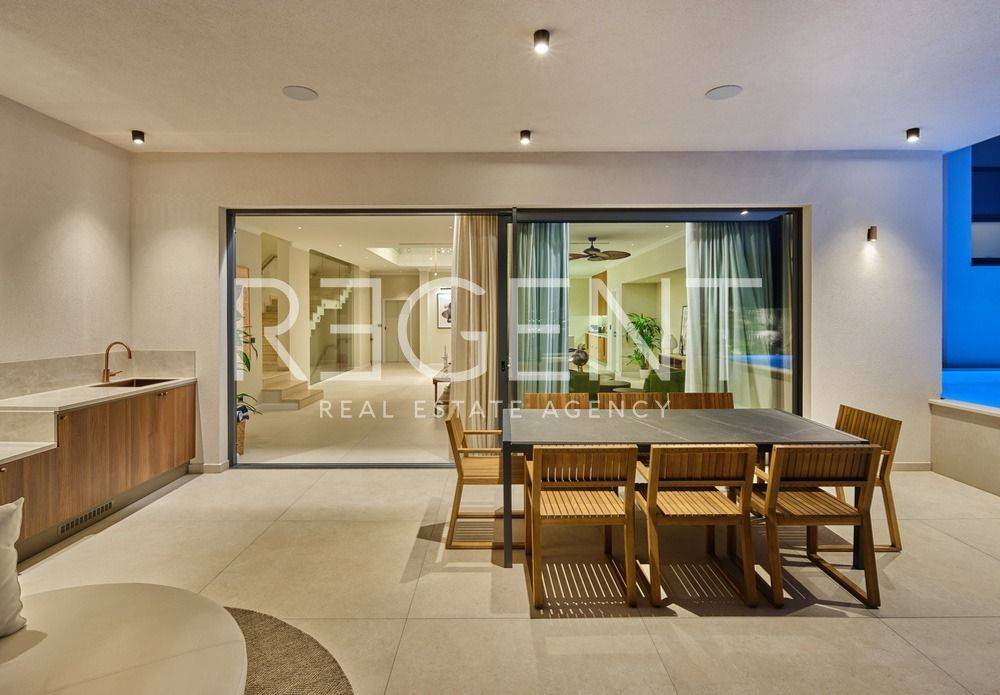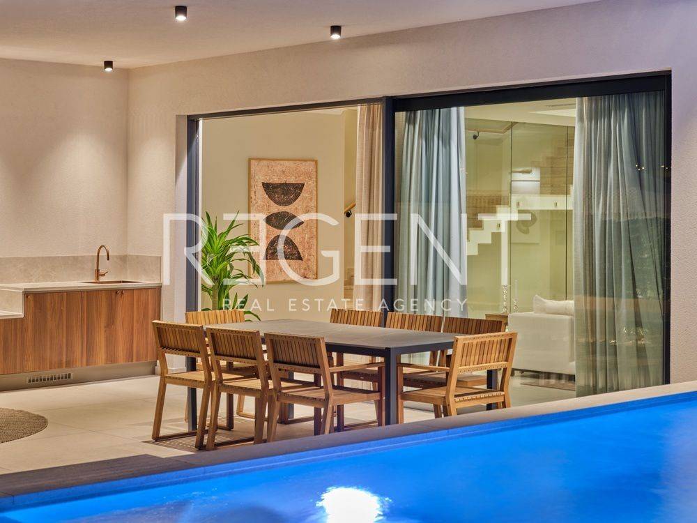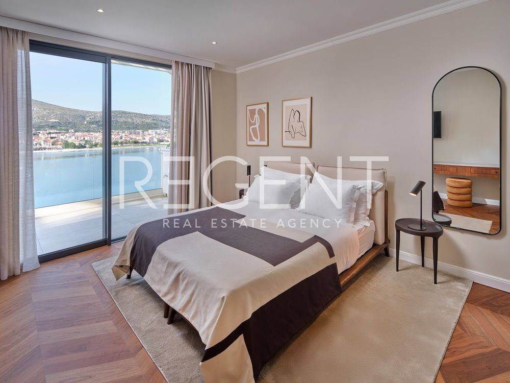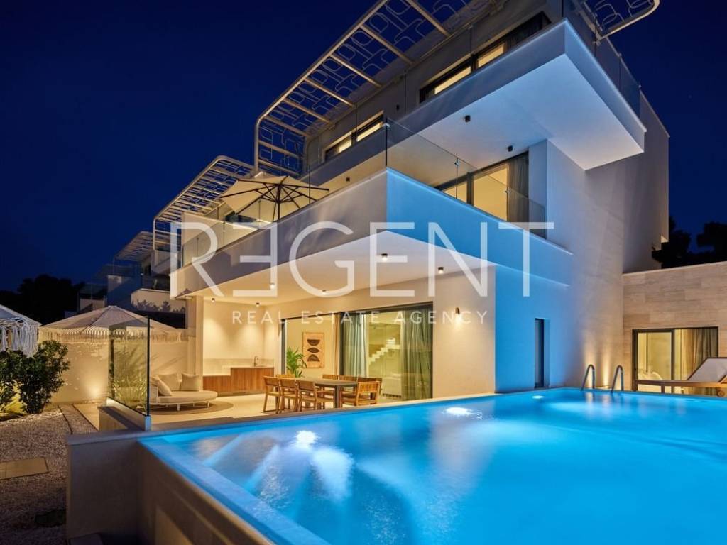 We mediate in the sale of modern villas in Trogir with sea views that exude elegance and functionality. Currently, two villas are for sale, villa B and F. They are built on a gently sloping terrain with a slope to the north, and access is provided from all sides. The residential and commercial building with a transformer station and an auxiliary building-pool has a total of three floors: basement, ground floor, 1st floor and 2nd floor. The basement of the villa has 85.3 m2 and consists of: Entrance area Horizontal communication Auxiliary space Gym/playroom Spa area Engine room Economy WC Compensation pool Garage parking space The ground floor of the villa has 113.3 m2 and consists of: Kitchen, dining room and living room Bedroom Bathroom WC Uncovered plateau with covered porch Garden Outdoor pool The 1st floor of the villa has 63.6 m2 and consists of: Entrance area, Horizontal communication Living room Bedroom Bathroom Balcony Parking plate The 2nd floor of the villa has an area of ​​78.8 m2 and consists of: Horizontal communication, 3 bedrooms, 3 bathrooms and Balcony   The villa is an excellent investment opportunity for generating income, as well as for a comfortable life for a large family. For more information, as well as a tour, feel free to contact us!