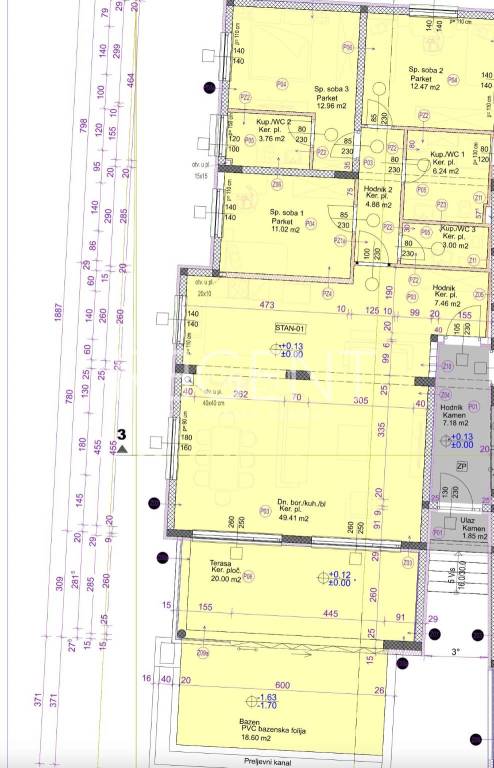 In Sukosan, near Zadar, there is a luxury residential building consisting of 6 apartments. The luxurious four-room apartment with a total net usable area of 160.61 m2 is located on the ground floor of a residential building and has its own swimming pool. It consists of: hallway (7.46 m2), living room + kitchen + dining room (49.41 m2), bedroom 1 (11.02 m2), hallway (4.88 m2), bathroom 1 (6.24 m2), bathroom 2 (3.76 m2), toilet (3 m2), bedroom 2 (12.47 m2), bedroom 3 (12.96 m2), terrace (20 m2), swimming pool + leached channel (22.46 m2). Located in a quiet location, only 50 meters from the crystal clear sea and a beautiful beach, this building offers an ideal combination of peace and proximity to all necessary amenities. All apartments have a sea view! EQUIPMENT: Regarding equipment, high-quality aluminum sliding walls, PVC windows and blinds equipped with electric lifters should be emphasized. Additional comfort is provided by Mitsubishi heat pumps, with one air conditioner installed in each room, in order to ensure the highest level of comfort according to individual preferences. There is the possibility of installing a fireplace if desired, with a chimney provided. The floor coverings in the bathrooms and toilet are tiles, and in the other rooms finished parquet. Thermal insulation made of 10 cm thick styrofoam. The building contains a garage, each apartment has 2 garage parking spaces with the possibility of buying an additional outdoor parking space. Contact us for more information!