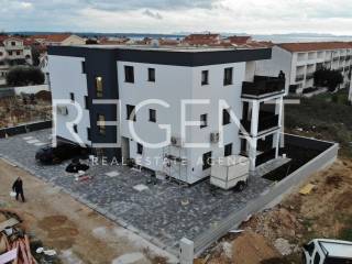 We present to you a luxury penthouse located in a residential building in Privlaka, with a total area of 150 m². This spacious apartment, which is fully equipped, offers an extraordinary view of the sea and is located only 80 meters from the beautiful beach and 100 meters from the nearest shop, providing a perfect balance between comfort and convenience. The interior of the penthouse includes three spacious bedrooms, two of which have their own en-suite bathrooms, ensuring maximum privacy. The third bedroom opens onto a private balcony of 11 m², ideal for relaxing with a morning coffee or enjoying the evening sunset. In total, the apartment has three modernly equipped bathrooms. The central part of the apartment consists of a spacious living room connected to the dining room and a fully equipped kitchen, which also includes a practical storage room. The living room opens onto an impressive terrace of 19 m², perfect for socializing and enjoying the panoramic sea view. The penthouse also has its own yard, providing additional space for relaxation or garden activities. For your comfort, the apartment is equipped with modern air conditioners and underfloor heating, ensuring a comfortable temperature throughout the year. Electric blinds and mosquito nets on the windows allow easy light management and protection from insects. In addition, an installation for a jacuzzi is planned, providing you with the possibility of luxurious relaxation in your own home. The price includes two private parking spaces, providing a safe and practical space for your vehicles. This penthouse represents a perfect combination of luxury, comfort and functionality, making it an ideal choice for those looking for a top-quality living space in the immediate vicinity of the sea. With carefully designed details and high-quality equipment, this apartment will satisfy even the most demanding tastes. This exclusive property offers a perfect combination of luxury, comfort and a prestigious location by the sea. Contact us for more information and to arrange a viewing!
