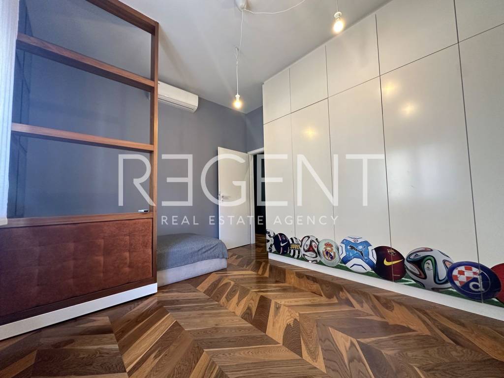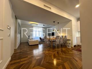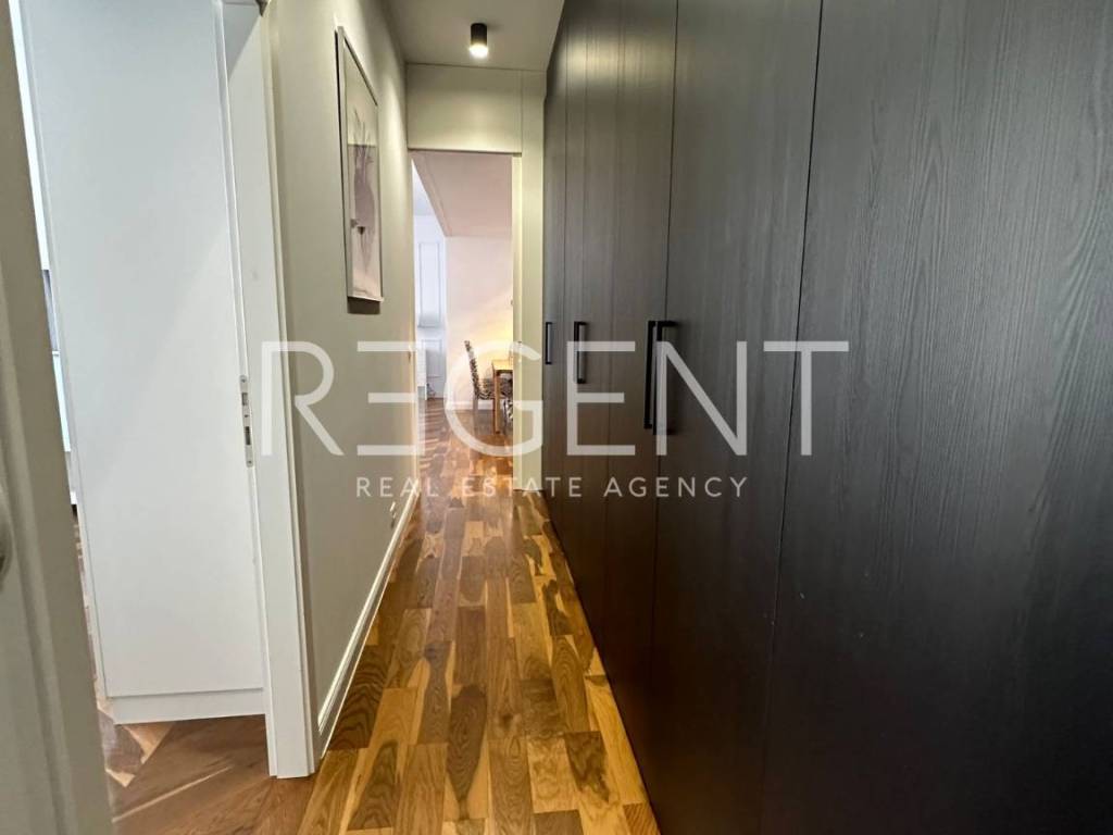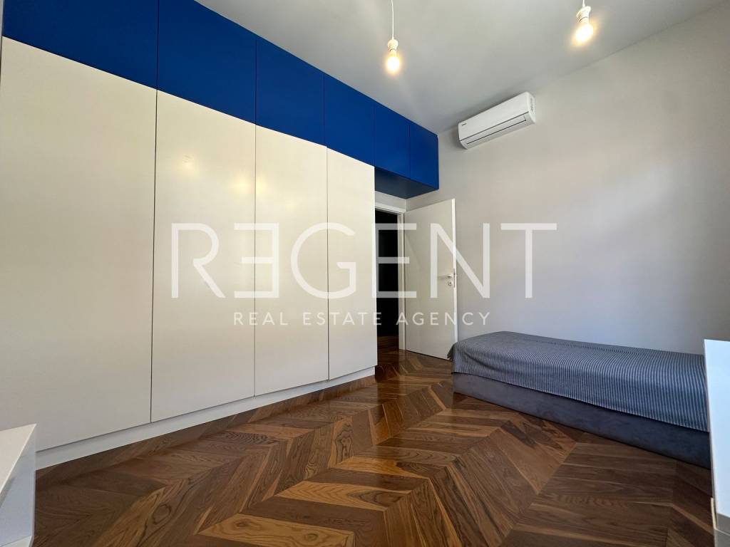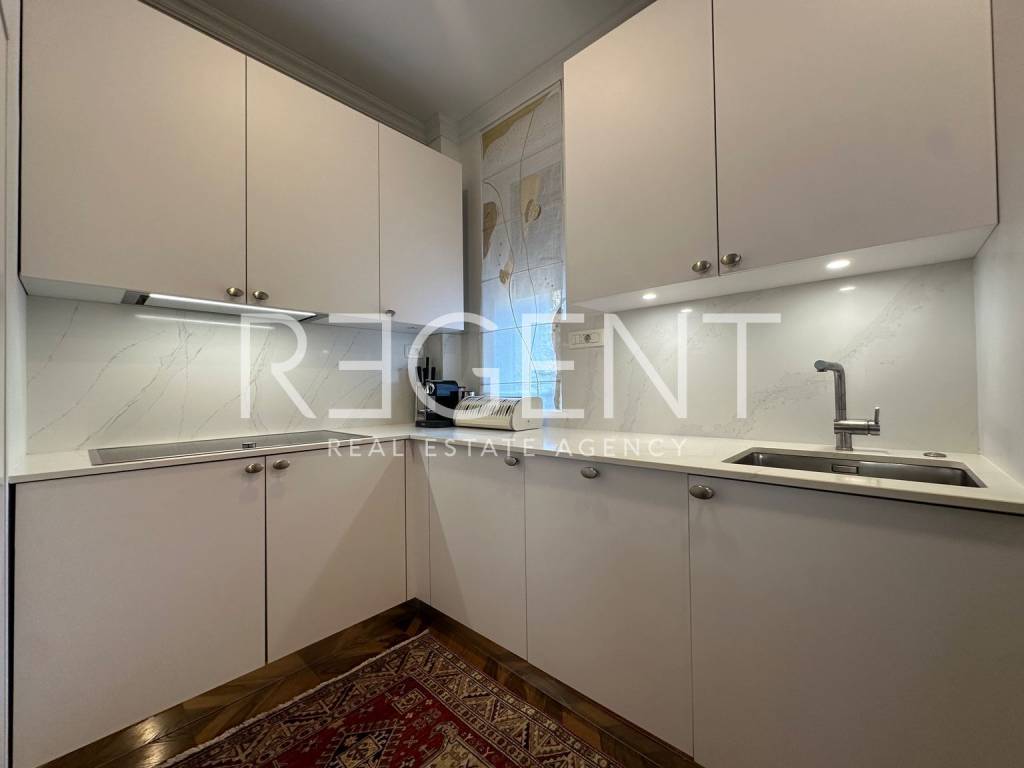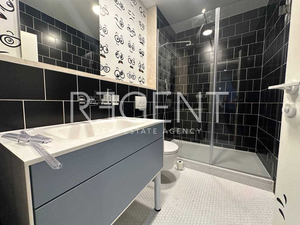 In the city center, in a prime location in the pedestrian zone, there is a four-room apartment for rent with an area of 115 m2, on the third floor of a residential building. The apartment consists of: three bedrooms, two bathrooms, a toilet, an open space living room with kitchen and dining room, a pantry and a balcony. The orientation of the apartment is north-south. Heating is underfloor in the bathrooms, and rooms with radiators. Cooling in the apartment is air conditioning in the suspended ceilings. The apartment is fully furnished and contains a washing machine, dryer and all appliances in the kitchen. Top location, city center surrounded by all essential living facilities (school, kindergarten, shops, banks, restaurants, pharmacies) Contact us for more information.