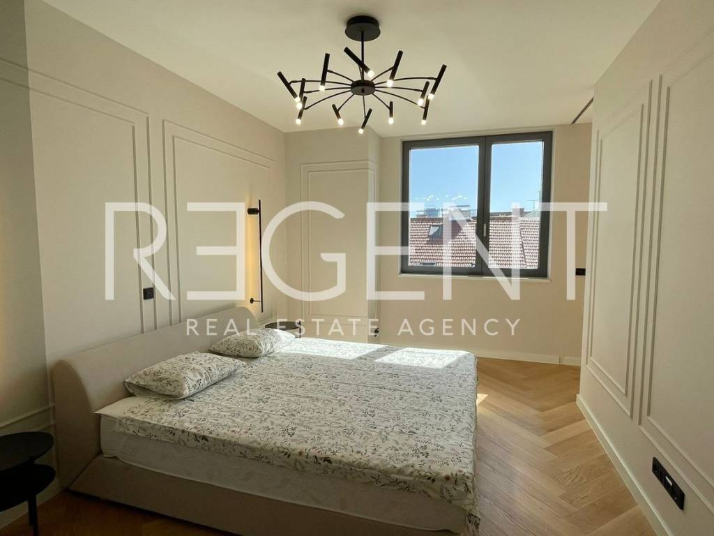 The apartment with an area of 81.27 m² is located on the 4th floor of a modern residential building with an elevator, and is available from September 1st. It is east-facing, superbly and luxuriously furnished, and equipped with the latest systems. It consists of an entrance area (6.63 m²), a spacious kitchen with living room (28.17 m²), two bedrooms (16.44 m² and 15.67 m²), two bathrooms (6.64 m² and 3.54 m²) and an additional toilet (1.90 m²) and a pantry (2.28 m²). The apartment has underfloor heating by zones, a smart house system, electric blinds, aluminum/wood joinery and air conditioning. The rental price includes a garage parking space of 14 m² with an electric charger. The building has an elevator and the apartment is available from September 1, 2025. It is located in Medulićeva Street, in the immediate vicinity of Britanski Trg (British Square) and all necessary amenities, shops, restaurants, market, public transport, schools and other conveniences. Excellent traffic connections, which allows quick access to the city center and main roads. For more information, feel free to contact us!