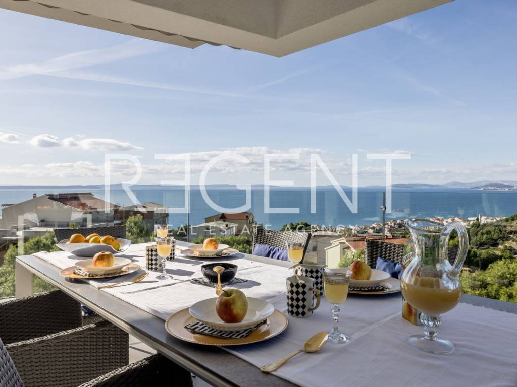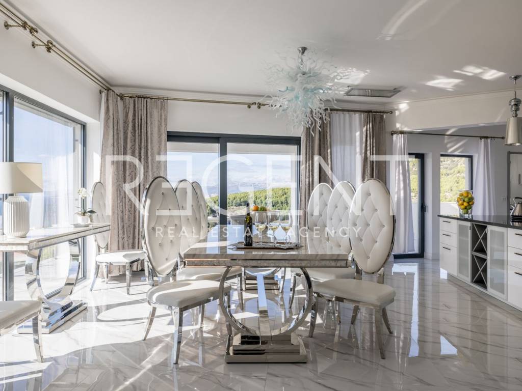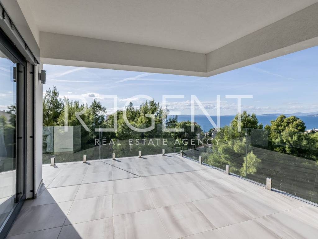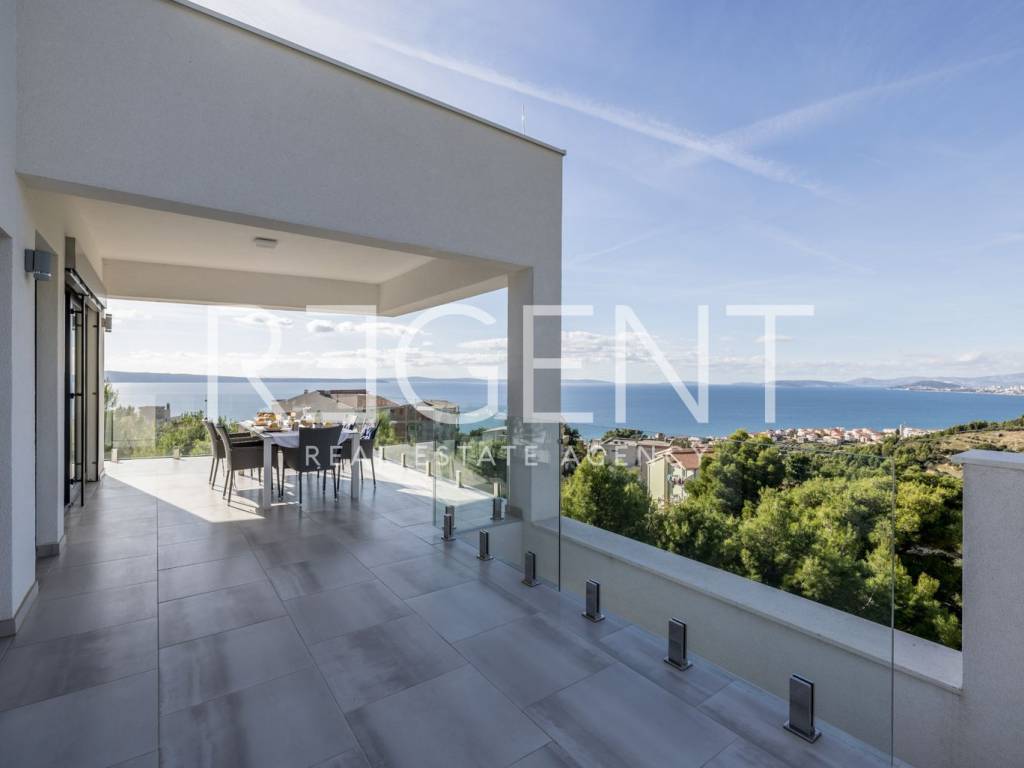 The attractive villa with an urban look is located on a spacious plot of an incredible 1600 m2, in a great location in Podstrana near Split. It is ideal for families, investors or as a luxury holiday home. This unique villa, built in 2018, with a total net area, consists of a ground floor, first and second floor. It has 6 rooms and 7 bathrooms. Each floor has its own terrace, and the villa also boasts 3 swimming pools - two chlorinated and one with sea water, as well as an outdoor kitchen, sauna and a spacious yard suitable for summer days. Underfloor heating and ceramic tiles extend throughout the bathrooms, while the rest of the rooms are decorated with elegant parquet flooring. The property also offers several parking spaces, which contributes to the practicality of the stay. The villa is located in a quiet and family-friendly location, with excellent connectivity and proximity to all important amenities - schools, shops, parks and public transport are only a few minutes away. The villa offers a stunning and open view of the sea, and the nearest beach is only a kilometer away. This property is fully built and ready for move-in, providing the perfect combination of luxury, comfort and functionality. For more information or to arrange a viewing, feel free to contact us and experience this beautiful property.