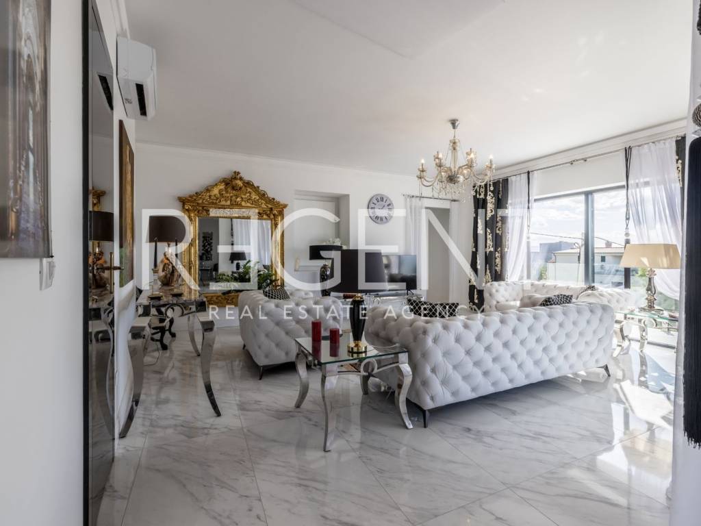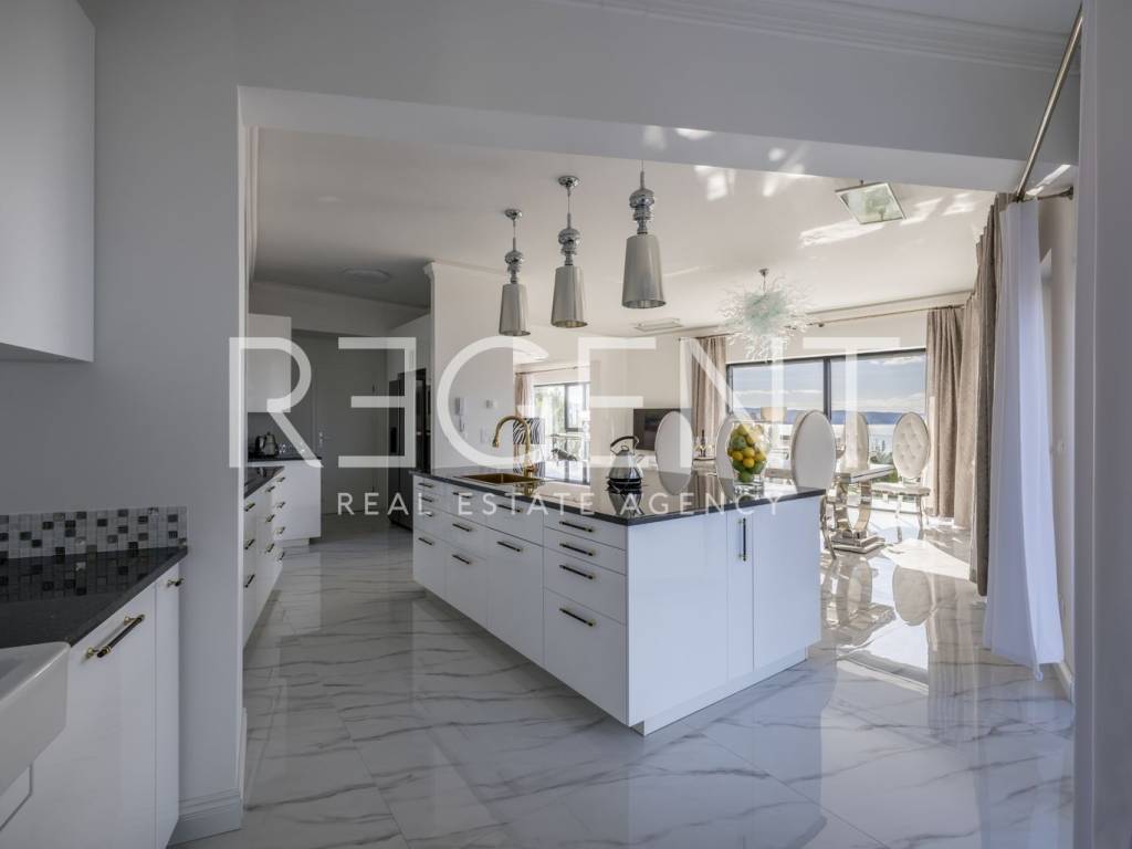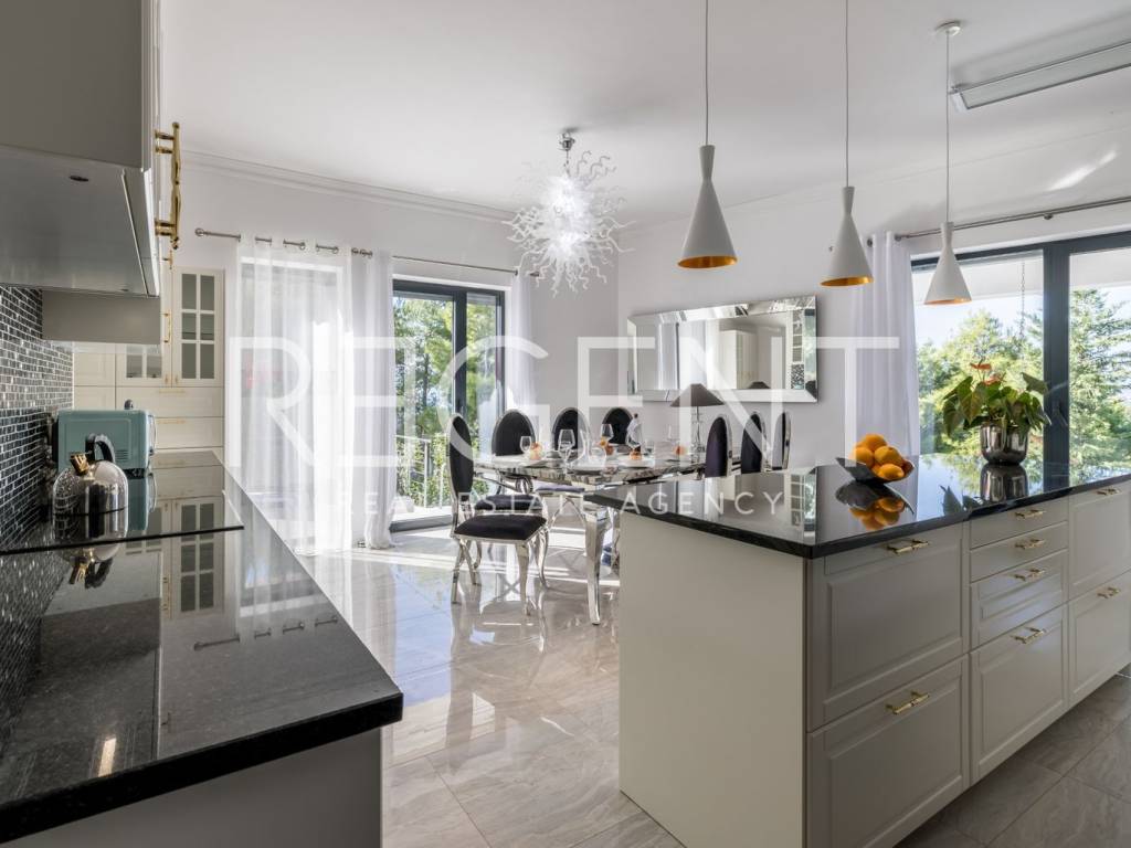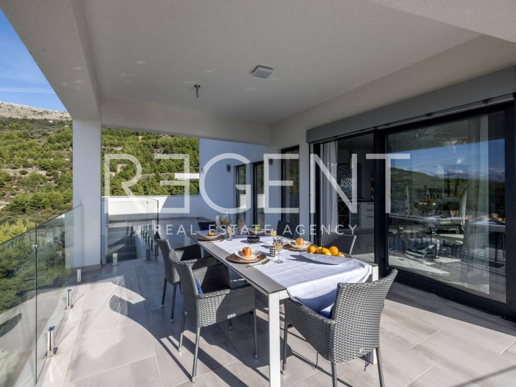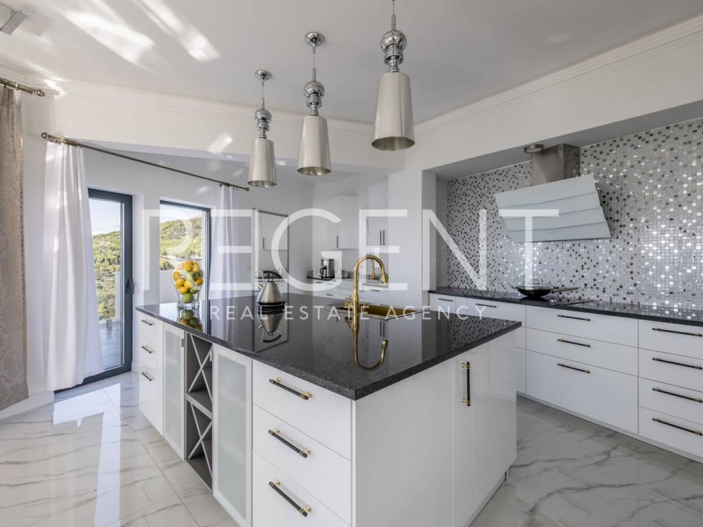 The attractive villa with an urban look is located on a spacious plot of an incredible 1600 m2, in a great location in Podstrana near Split. It is ideal for families, investors or as a luxury holiday home. This unique villa, built in 2018, with a total net area, consists of a ground floor, first and second floor. It has 6 rooms and 7 bathrooms. Each floor has its own terrace, and the villa also boasts 3 swimming pools - two chlorinated and one with sea water, as well as an outdoor kitchen, sauna and a spacious yard suitable for summer days. Underfloor heating and ceramic tiles extend throughout the bathrooms, while the rest of the rooms are decorated with elegant parquet flooring. The property also offers several parking spaces, which contributes to the practicality of the stay. The villa is located in a quiet and family-friendly location, with excellent connectivity and proximity to all important amenities - schools, shops, parks and public transport are only a few minutes away. The villa offers a stunning and open view of the sea, and the nearest beach is only a kilometer away. This property is fully built and ready for move-in, providing the perfect combination of luxury, comfort and functionality. For more information or to arrange a viewing, feel free to contact us and experience this beautiful property.