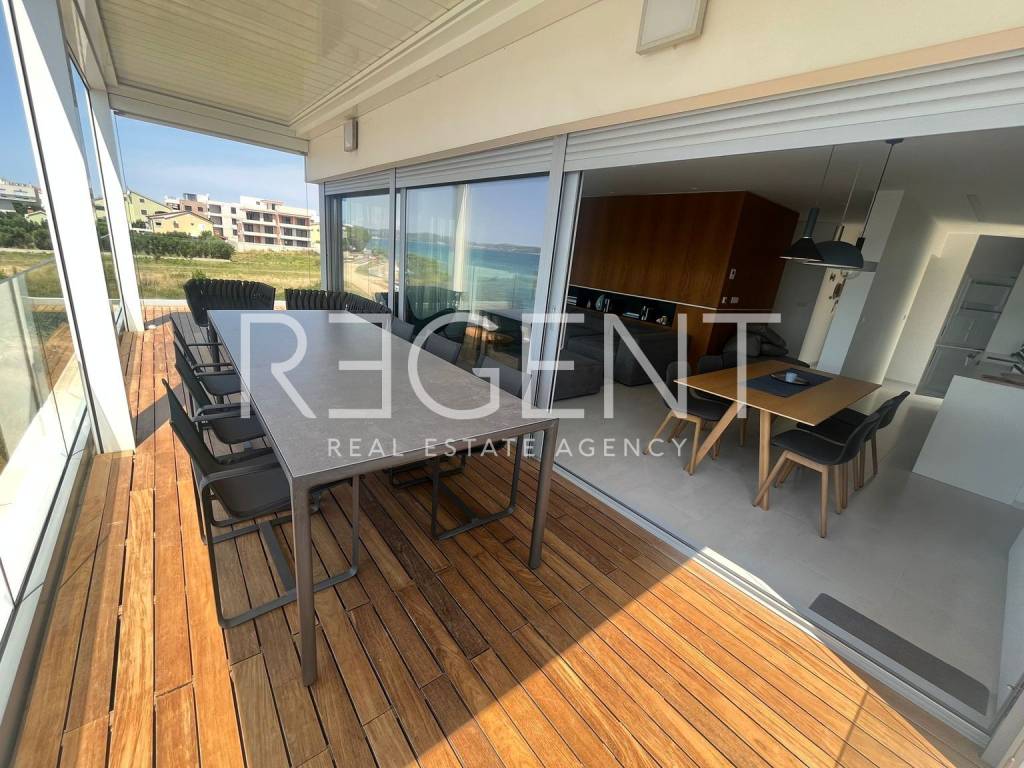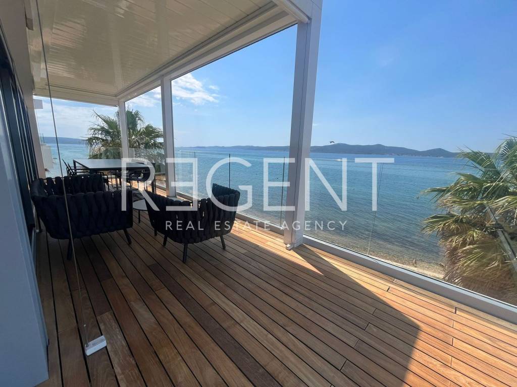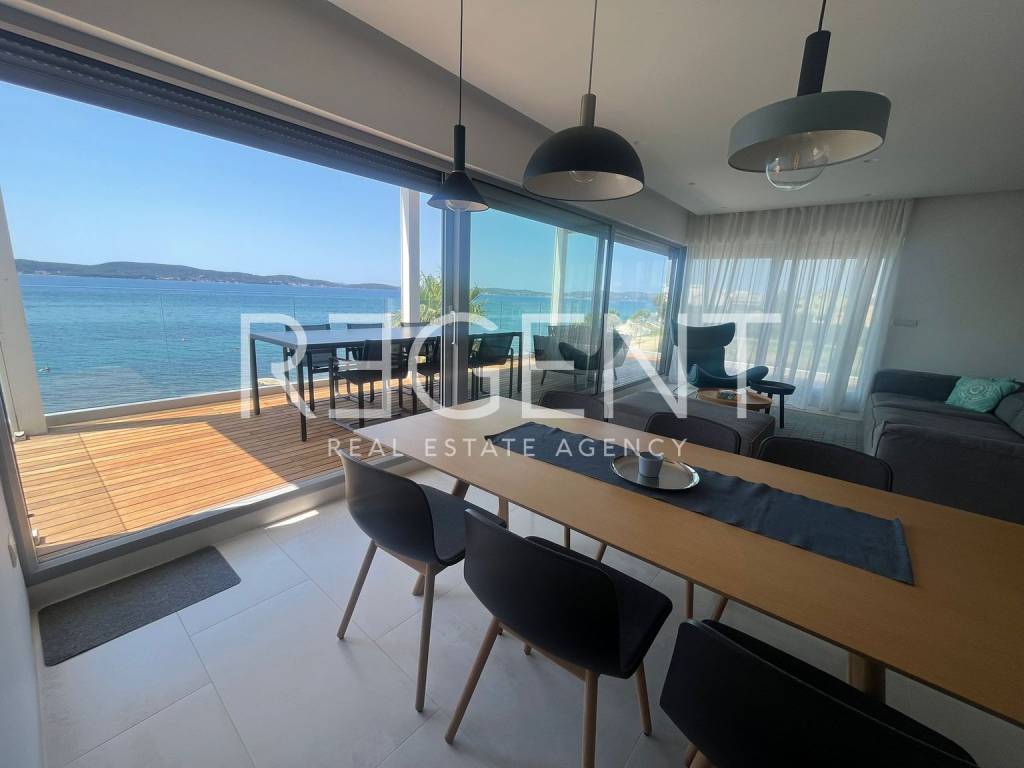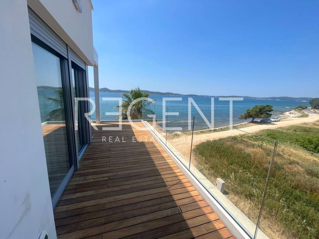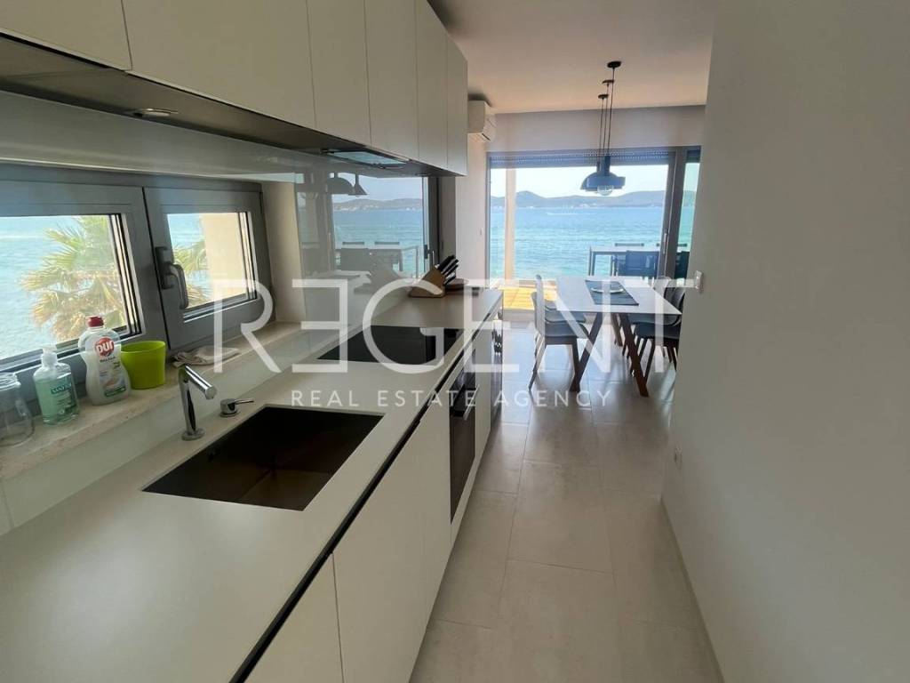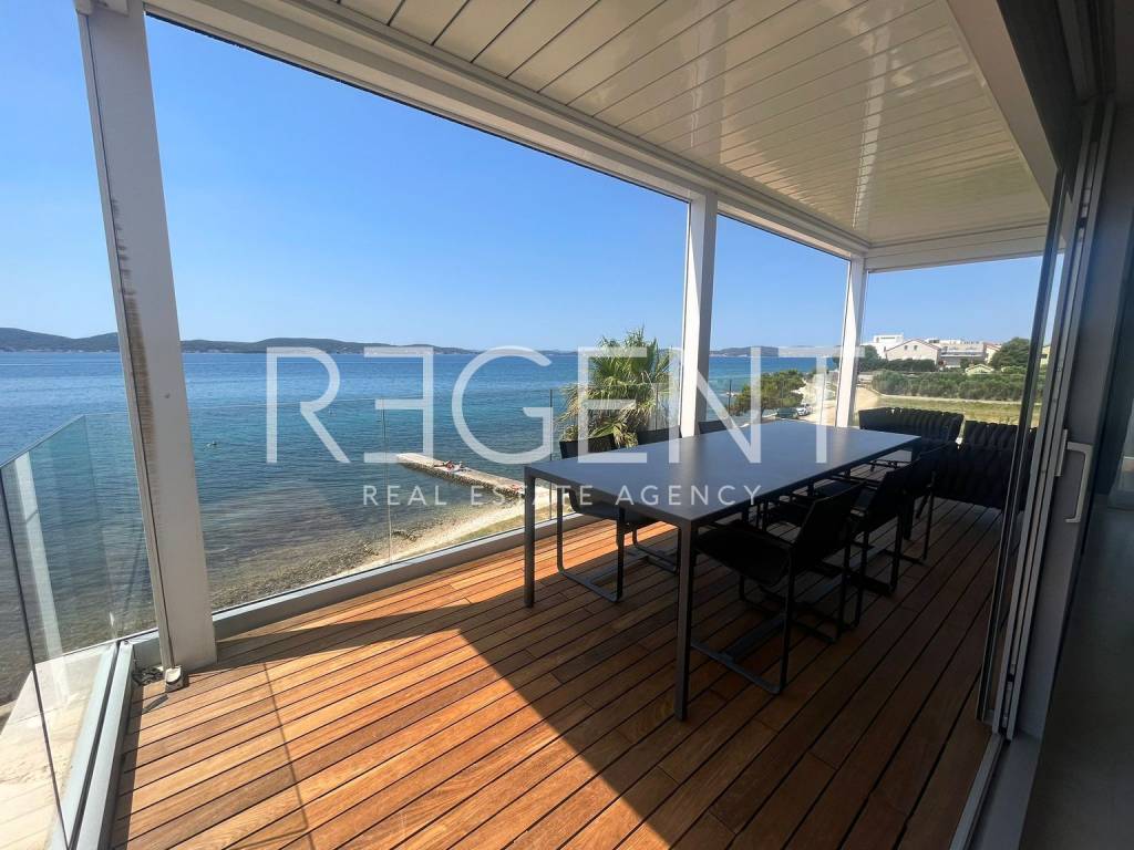 In Sukošan, not far from Zadar, there is a penthouse located in an urban residential building with two floors, in an exceptional location right by the sea. The apartment with a closed area of 85.54 m², with associated terraces, garden, storage room and two parking spaces, occupies a total of 117.75 m² of living space. The layout includes an entrance area, hallway, three bedrooms, two bathrooms, kitchen, living room with dining area, two terraces and additional storage rooms and a garden on the ground floor. The apartment also has two outdoor parking spaces. The covered terrace of the apartment offers a panoramic view of the sea. The property is equipped with quality systems and materials: anti-burglary door aluminum joinery with electric shutters video intercom and alarm system underfloor heating first class ceramics The building is located in a quiet part of Sukošan, within walking distance of the town center and all necessary amenities. Nearby are Zadar, Biograd na Moru and quick connections to the highway. For more information or to arrange a viewing, please feel free to contact us.